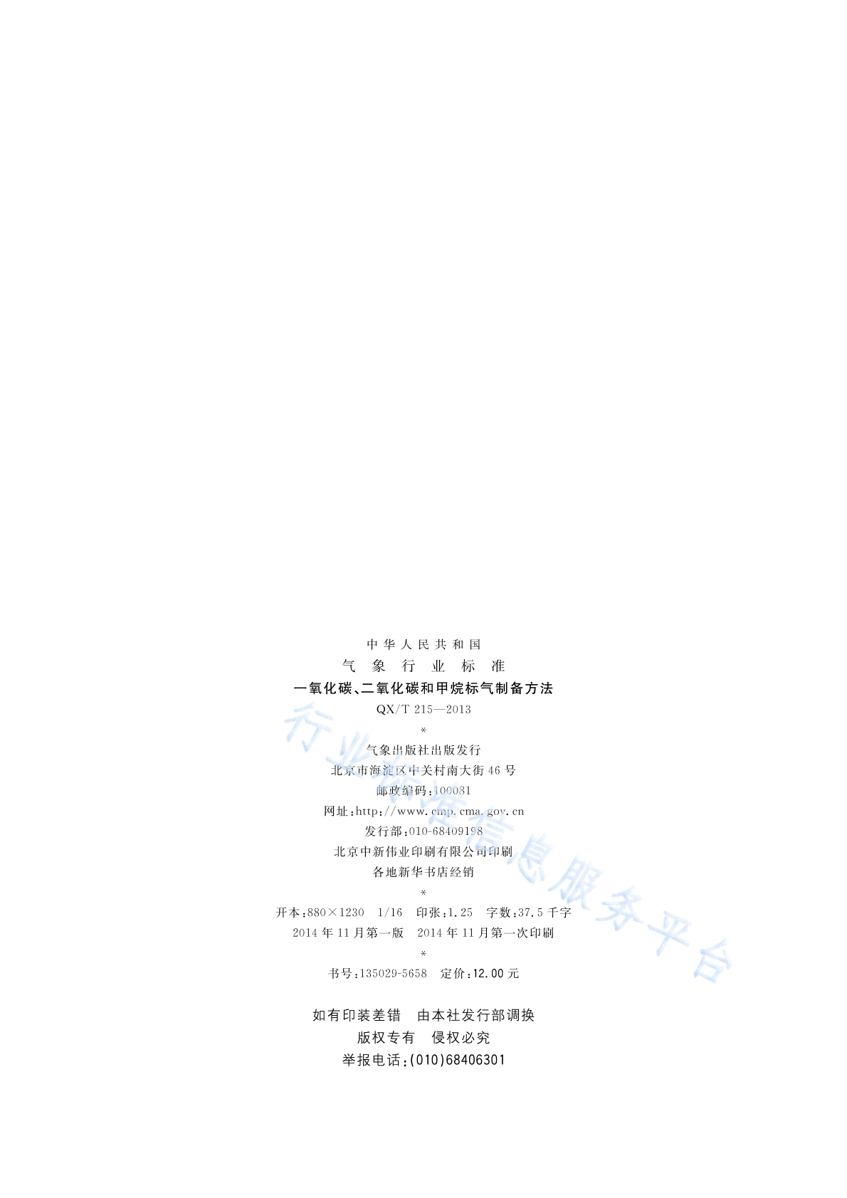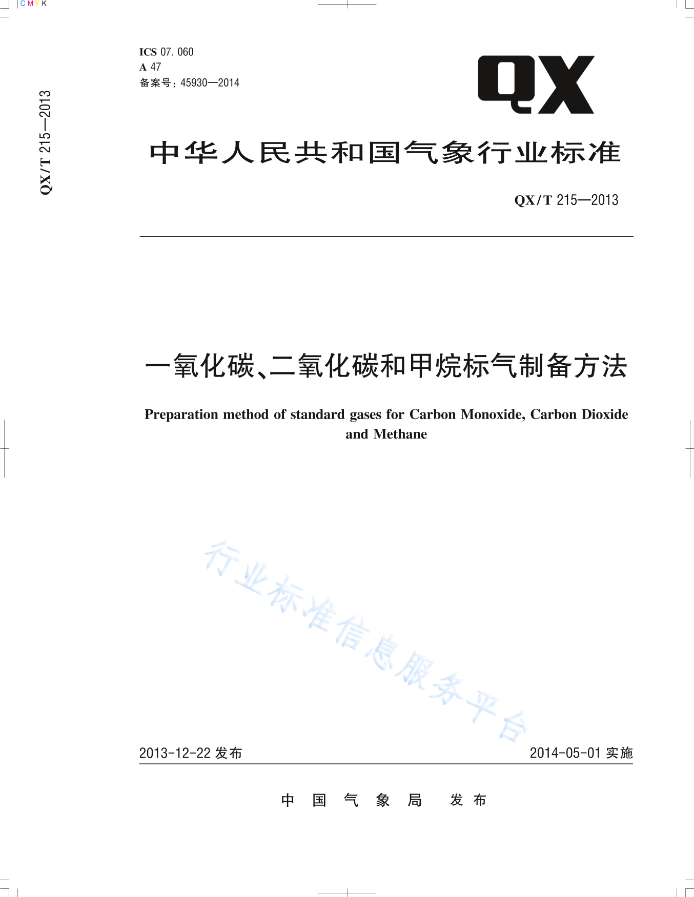 QX/T 215-2013 一氧化碳、二氧化碳和甲烷标气制备方法