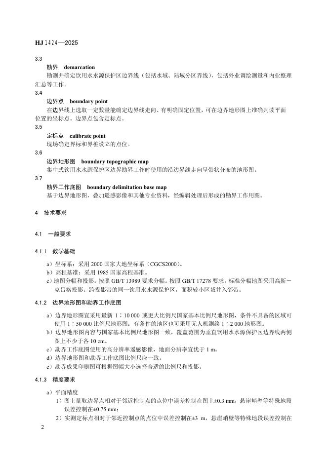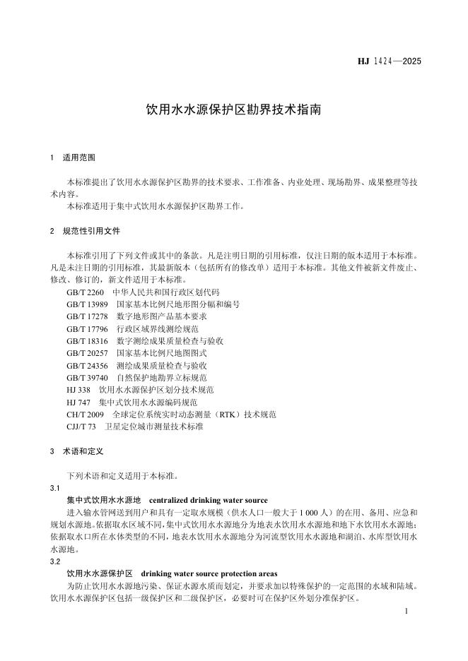 HJ 1424-2025 饮用水水源保护区勘界技术指南