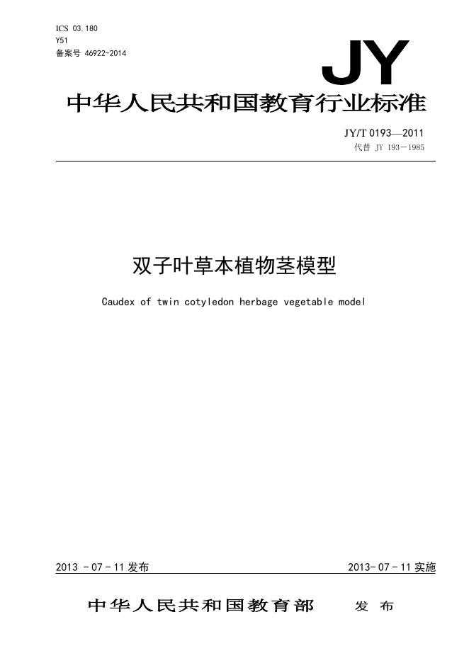 JY/T 0193-2011 双子叶草本植物茎模型