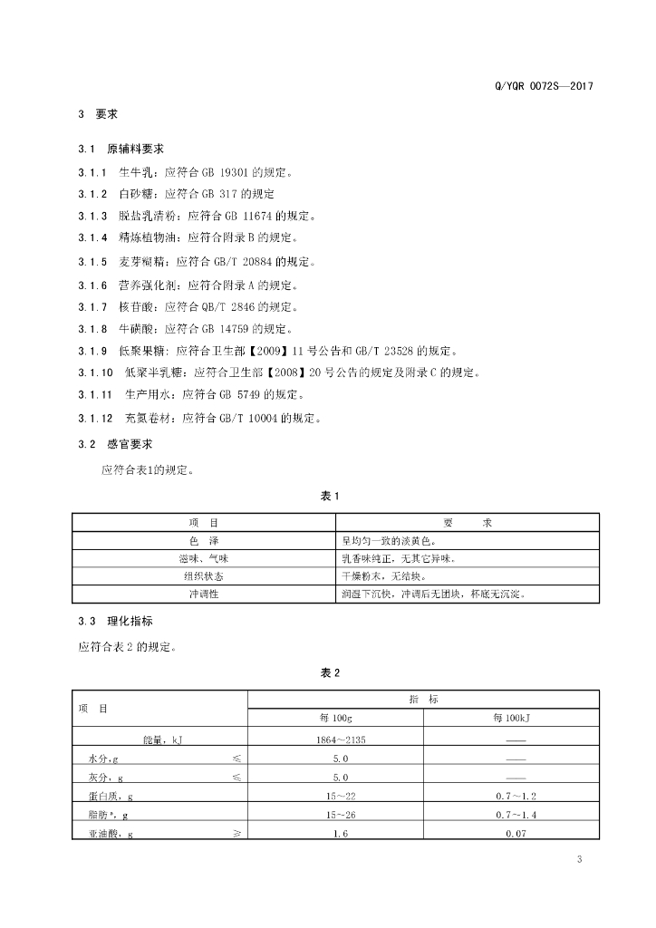 Q/YQR 0072S-2017 秦俑幼儿配方乳粉