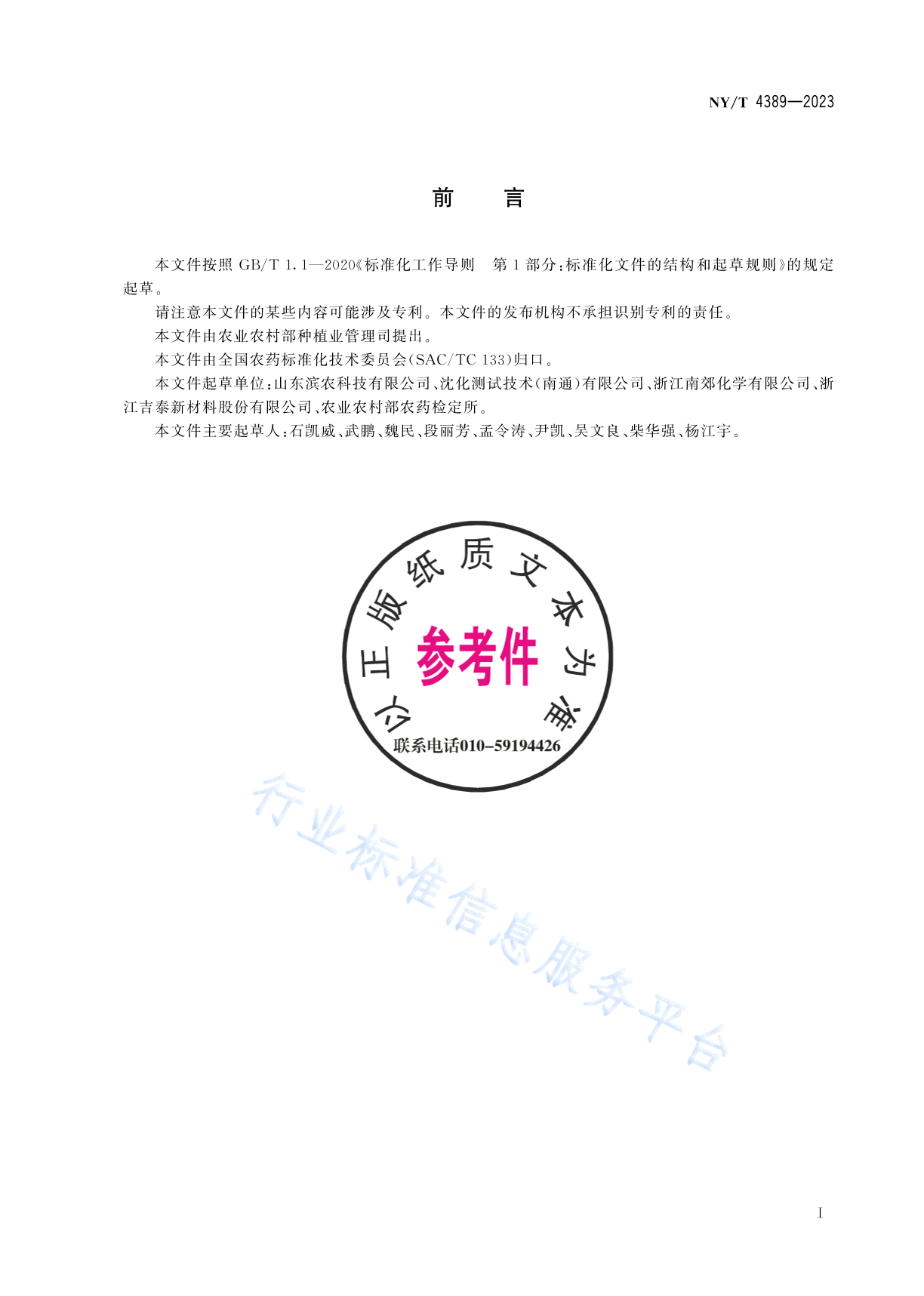 山东滨农科技有限公司、沈化测试技术(南通)有限公司、浙江南郊化学有限公司、浙江吉泰新材料股份有限公司、农业农村部农药检定所