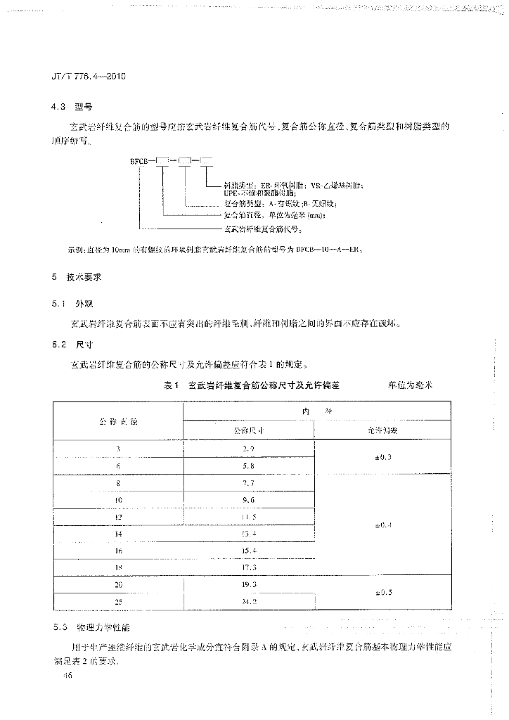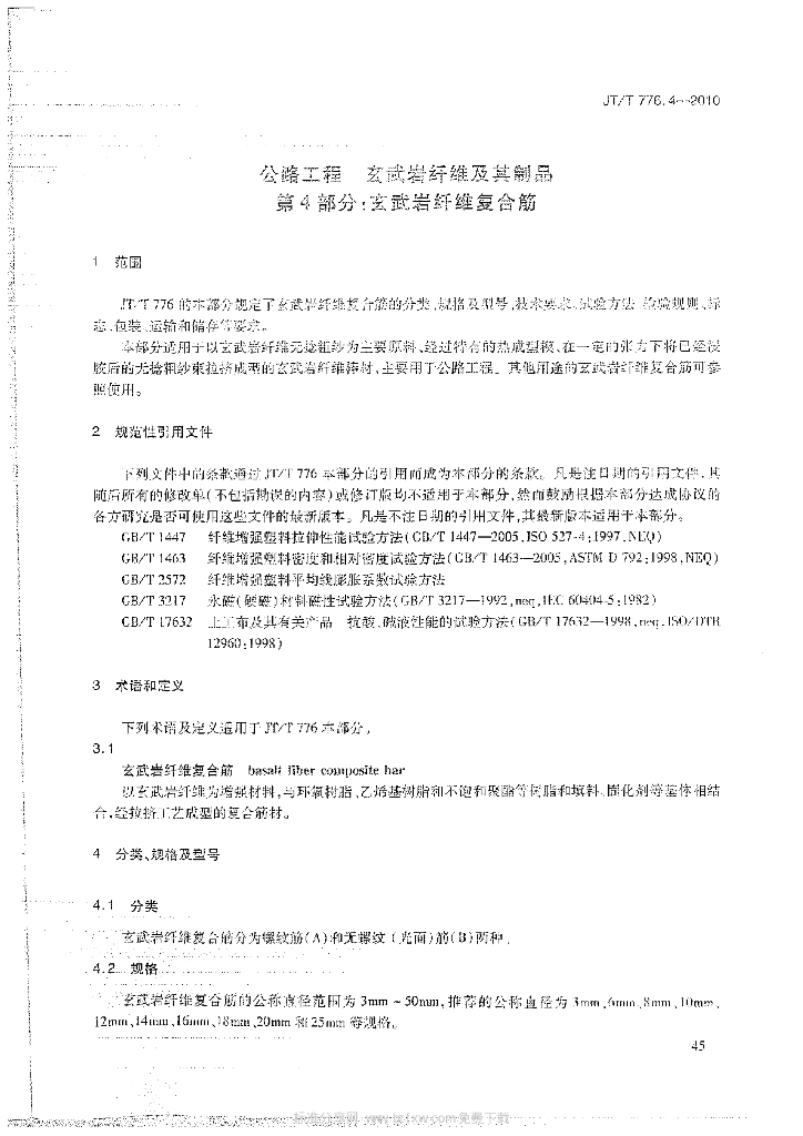 JT/T 776.4-2010 公路工程玄武岩纤维及其制品 第4部分:玄武岩纤维复合筋