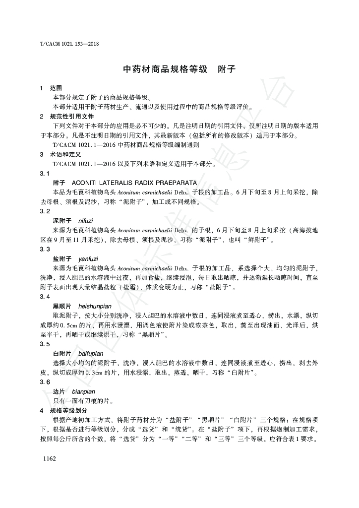 中国中药有限公司、四川江油中坝附子科技发展有限公司、四川省中医药科学院、 中国中医科学院中药资源中心、 中药材商品规格等级标准研究技术中心、北京中研百草检测认证有限公司