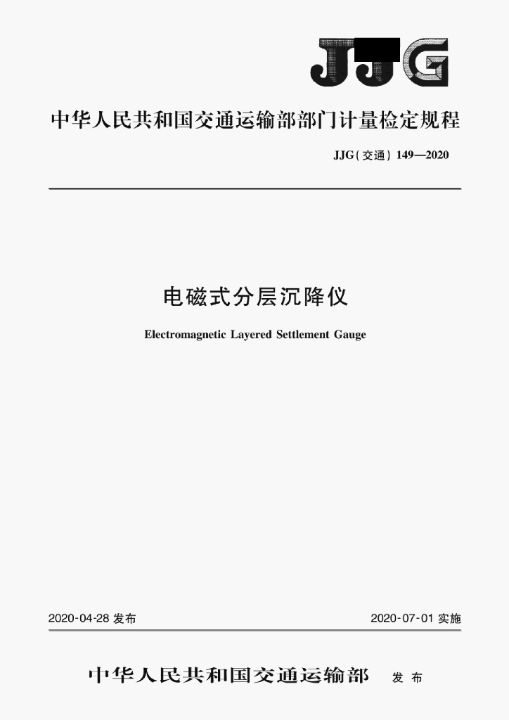 JJG(交通)149-2020 电磁式分层沉降仪检定规程