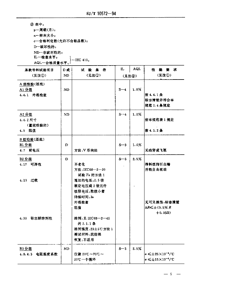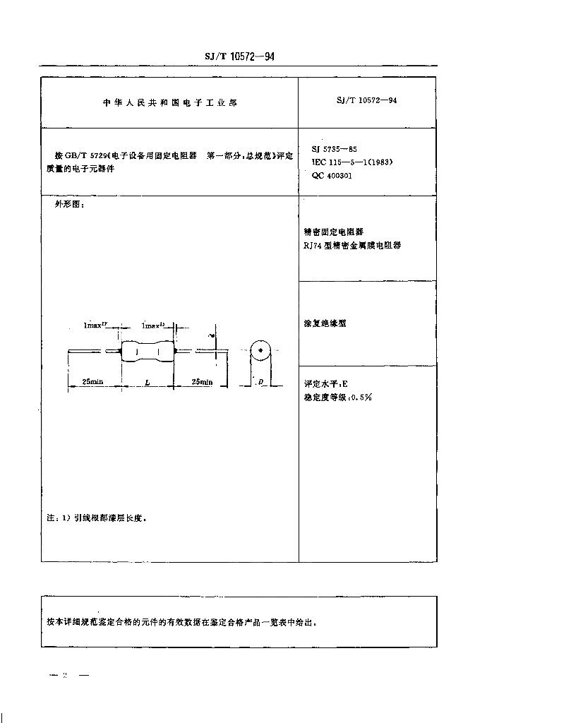 SJ/T 10572-1994 电子元器件详细规范 精密固定电阻器RJ74型精密金属膜电阻器 评定水平E
