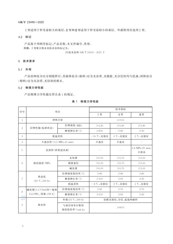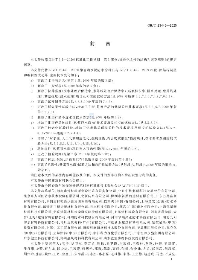 GB/T 23445-2025 聚合物水泥防水涂料