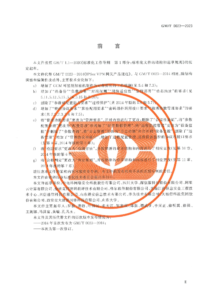 - 代替标准:GM/T 0023-2014