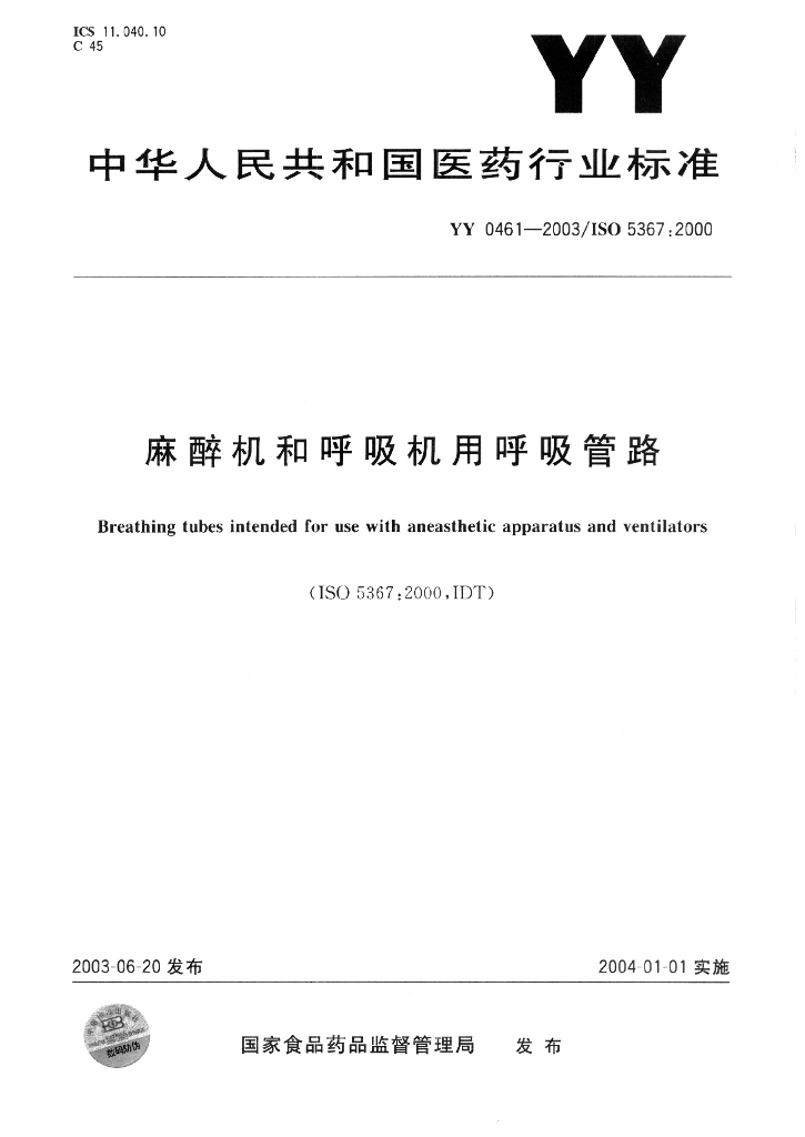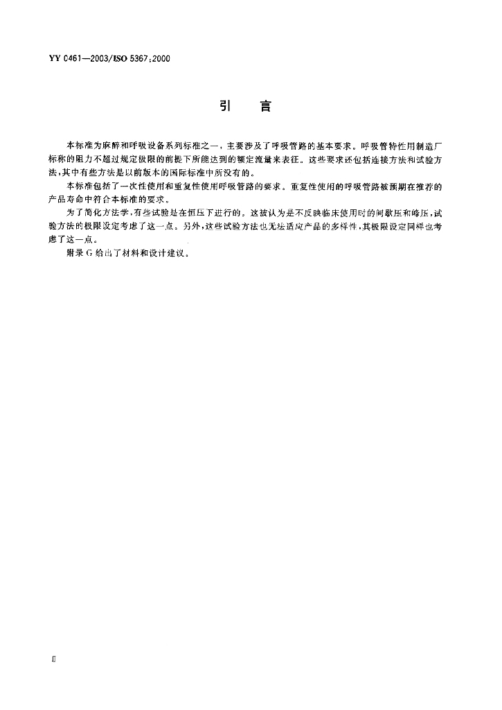 YY/T 0461-2003 麻醉机和呼吸机用呼吸管路
