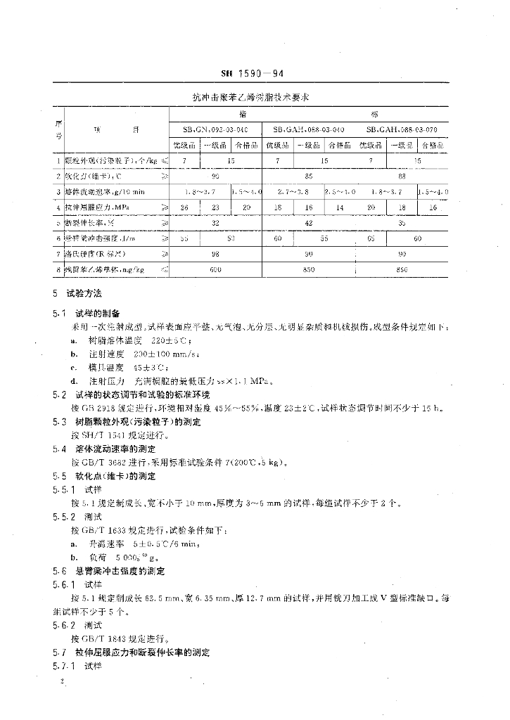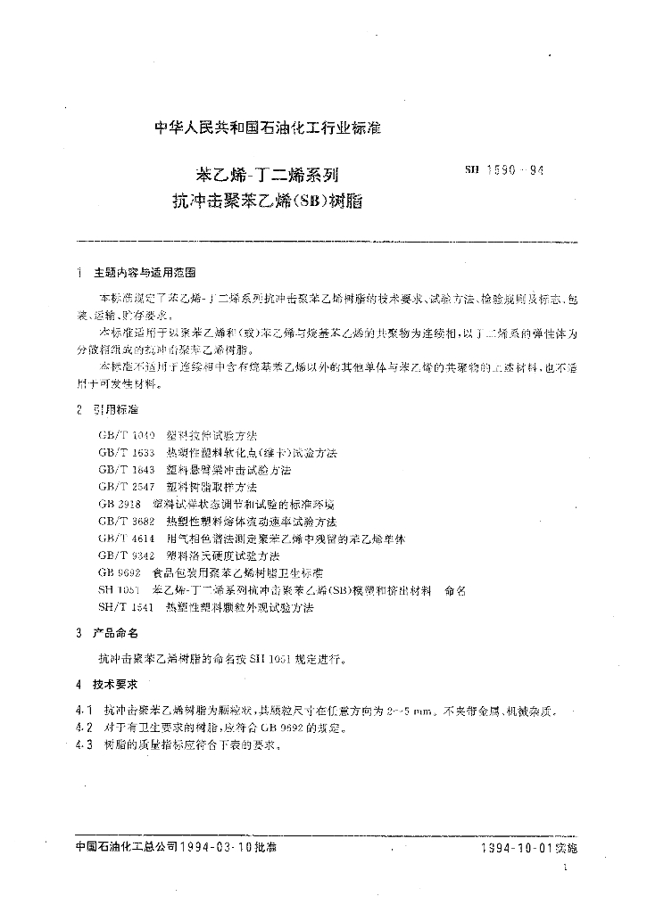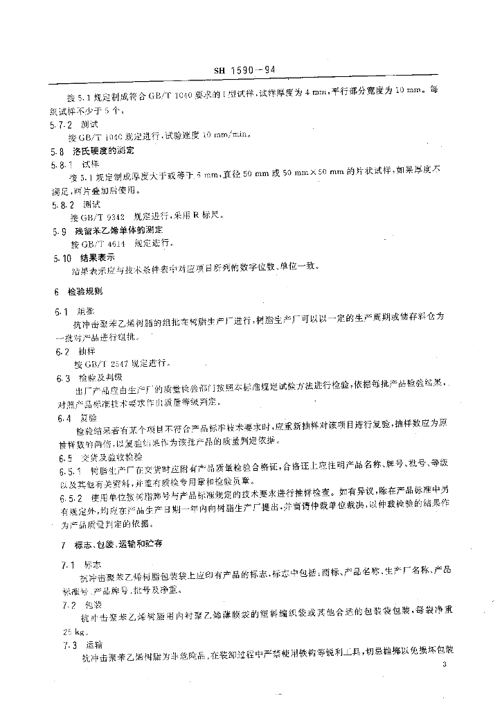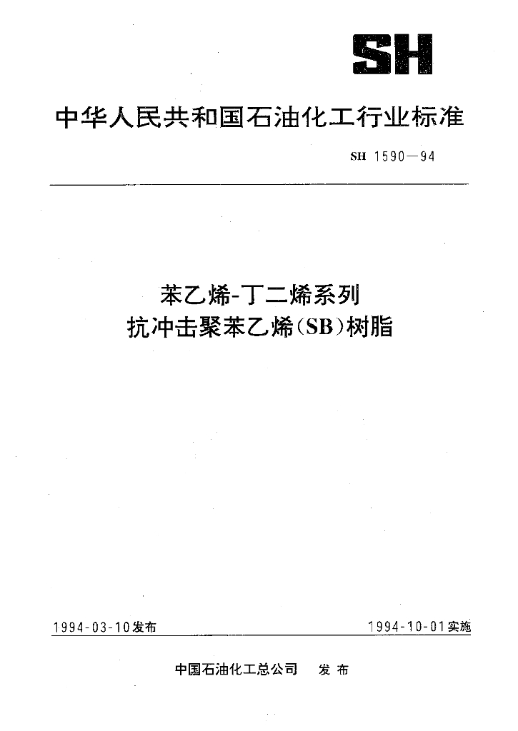 SH 1590-1994 苯乙烯-丁二烯系列抗冲击苯乙烯(SB)树脂