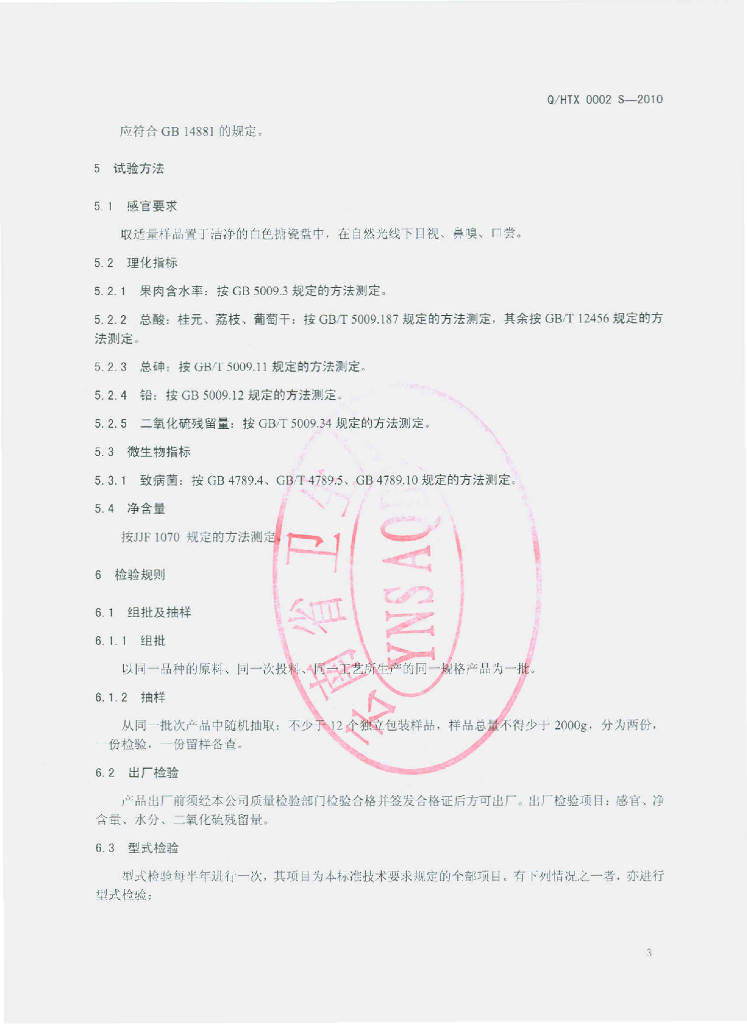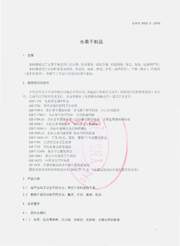 Q/HTX 0002S-2010 水果干制品