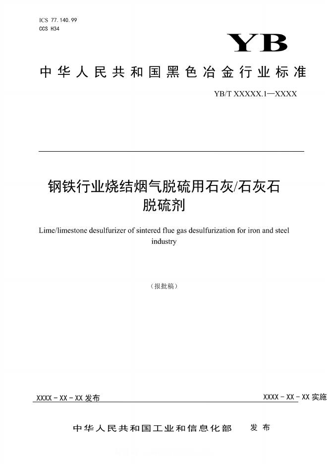 YB/T 6324.1-2024 钢铁行业烧结烟气脱硫用石灰/石灰石脱硫剂