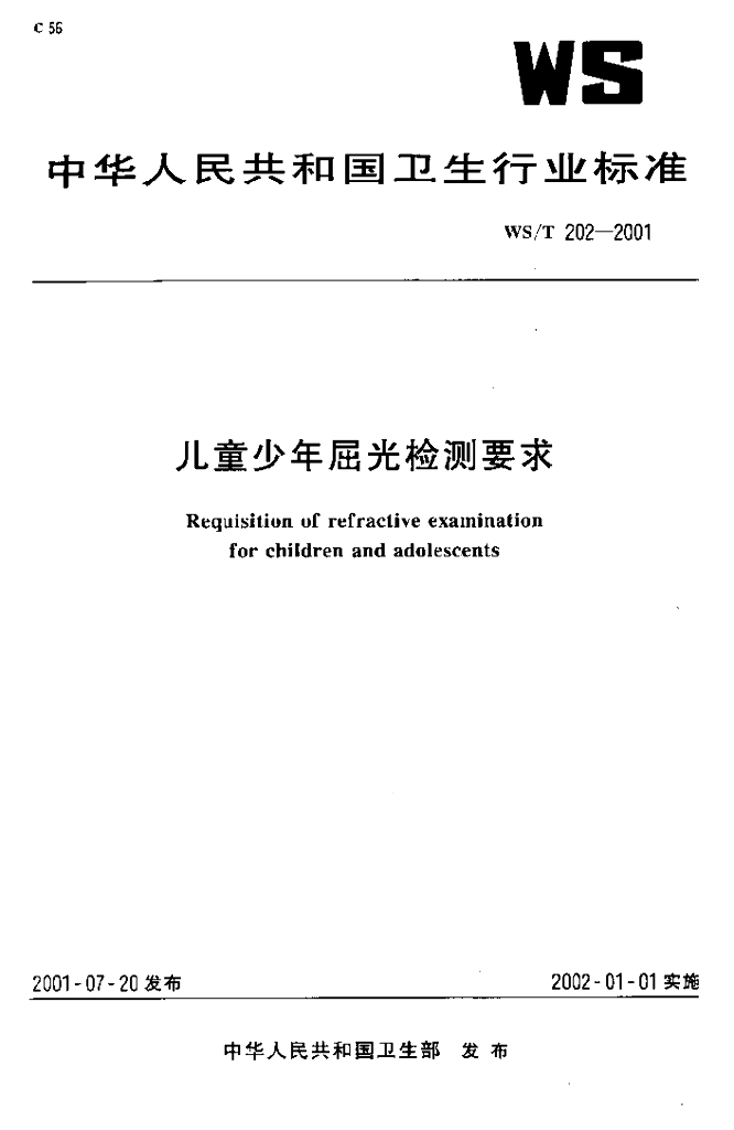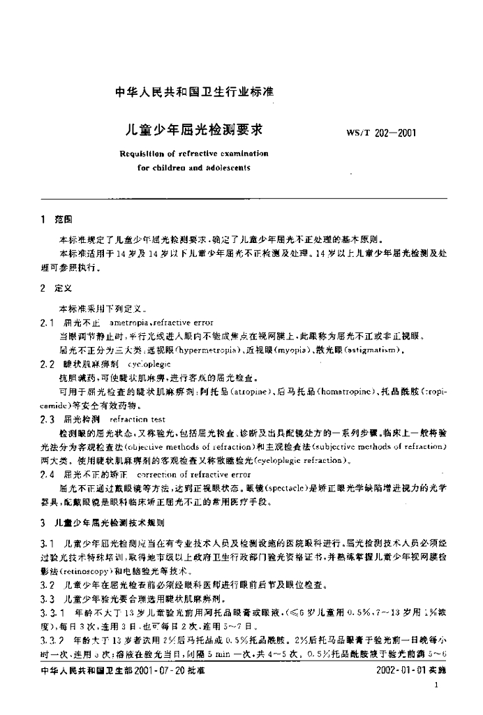 WS/T 202-2001 儿童少年屈光检测要求