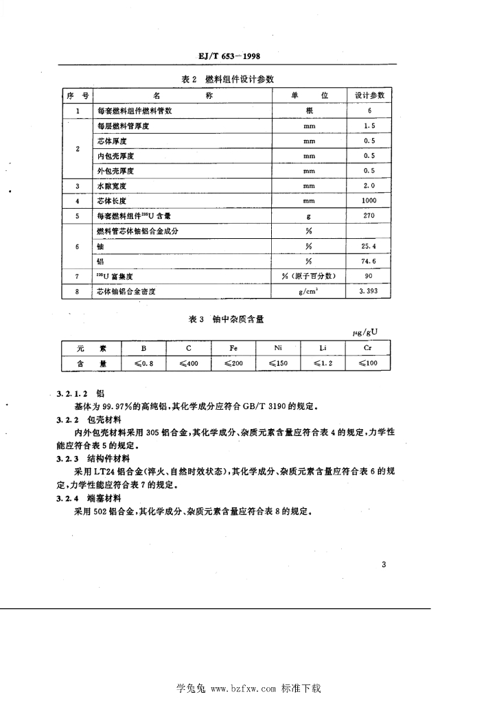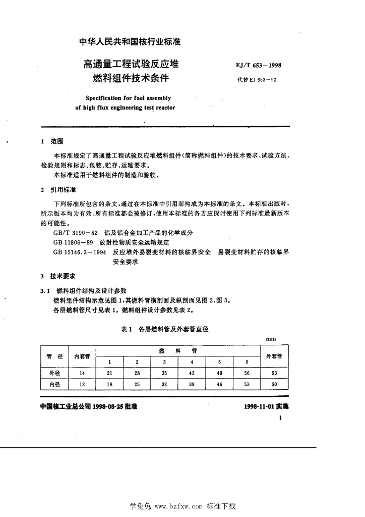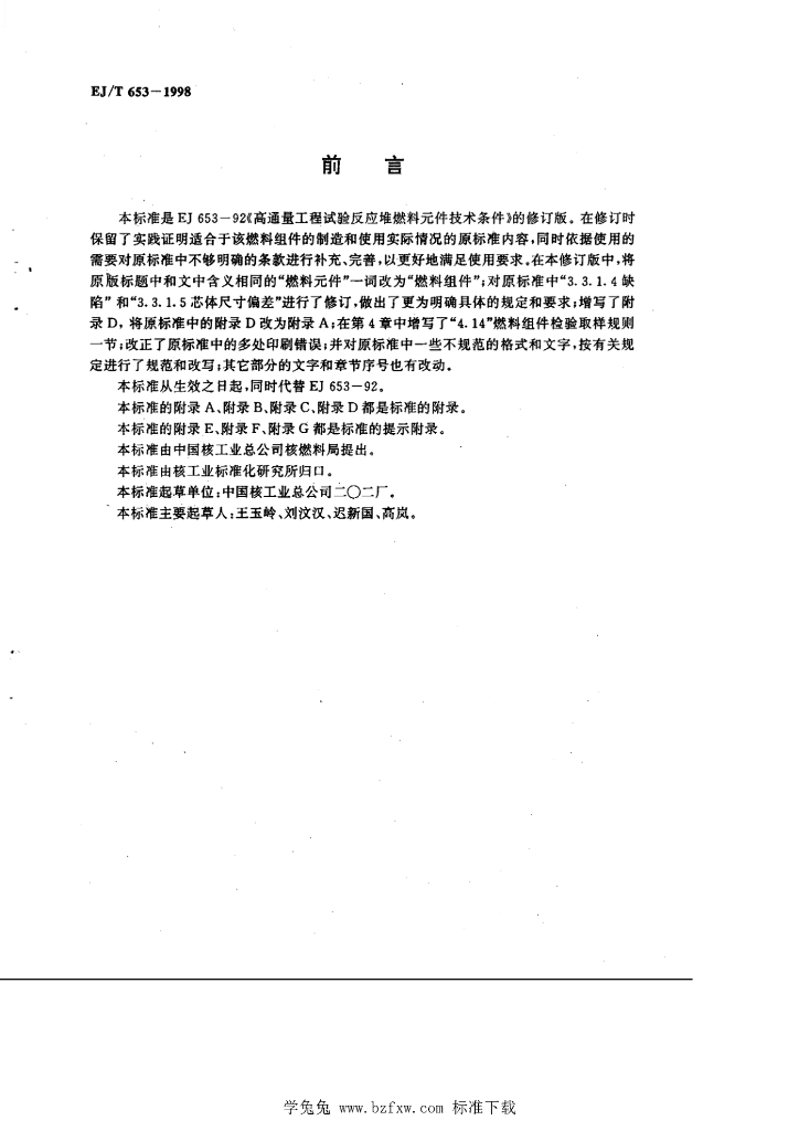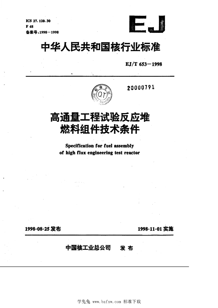 EJ/T 653-1998 高通量工程试验反应堆燃料组件技术条件