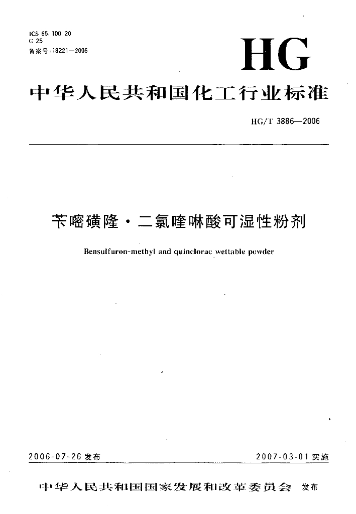HG/T 3886-2006 苄嘧磺隆●二氯喹啉酸可湿性粉剂