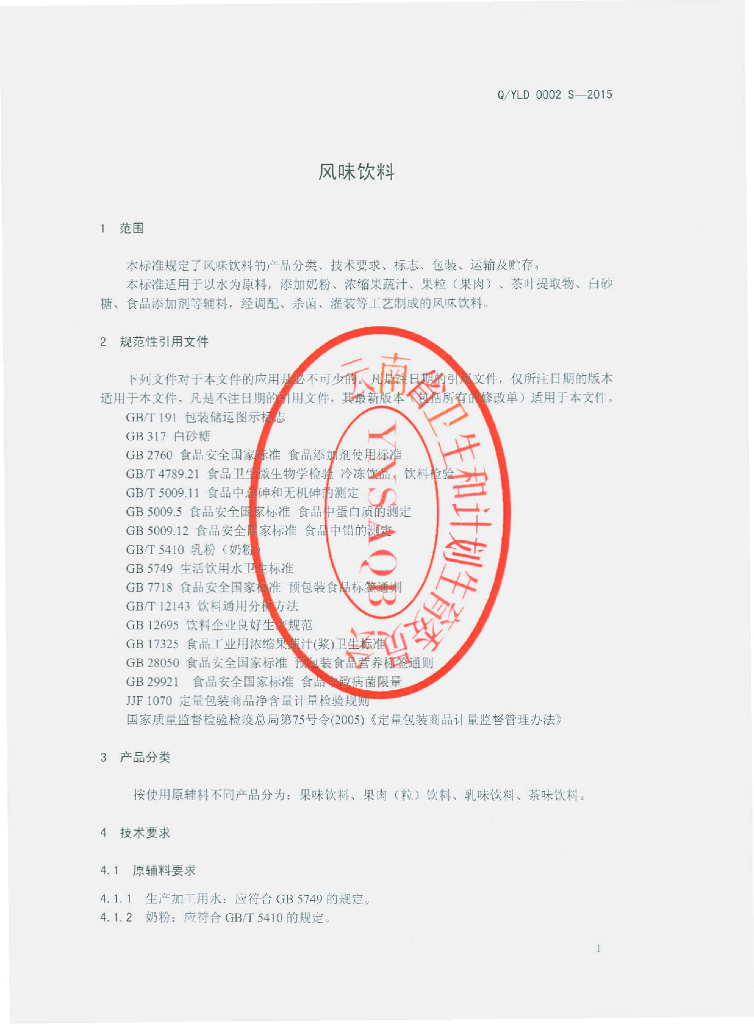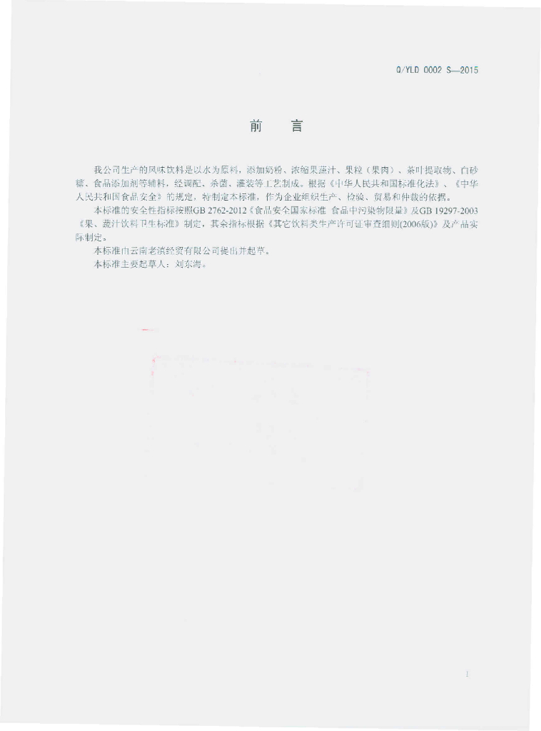 Q/YLD 0002S-2015 云南老滇经贸有限公司 风味饮料
