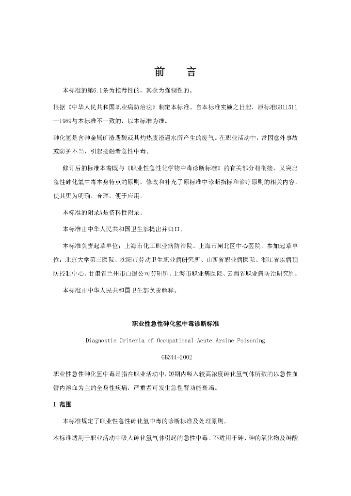 上海市化工职业病防治院、上海市闸北区中心医院、北京大学第三医院、沈阳市劳动卫生职业病研究所、山西省职业病医院、浙江省疾病预防控制中心、甘肃省兰州市白银公司劳研所、上海市职业病医院、云南省职业病防治研究所