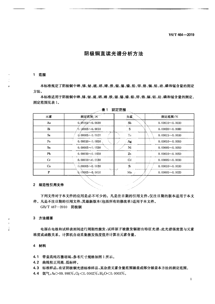 YS/T 464-2019 阴极铜直读光谱分析方法