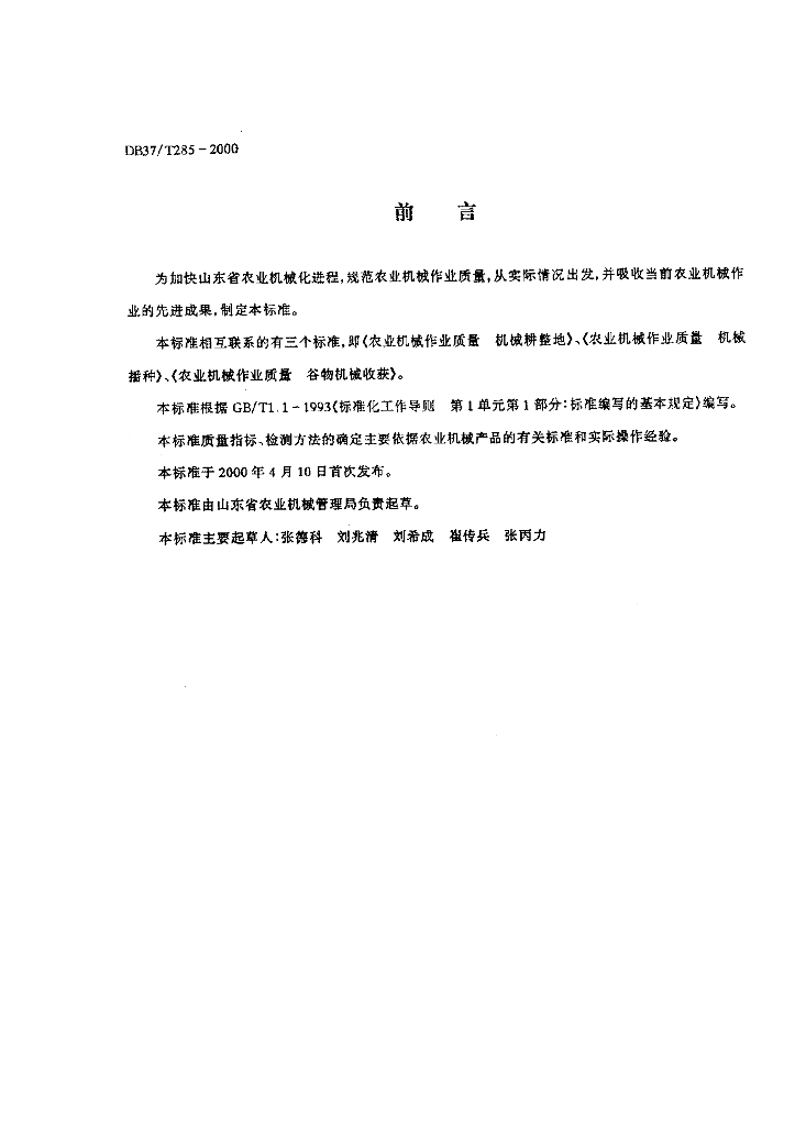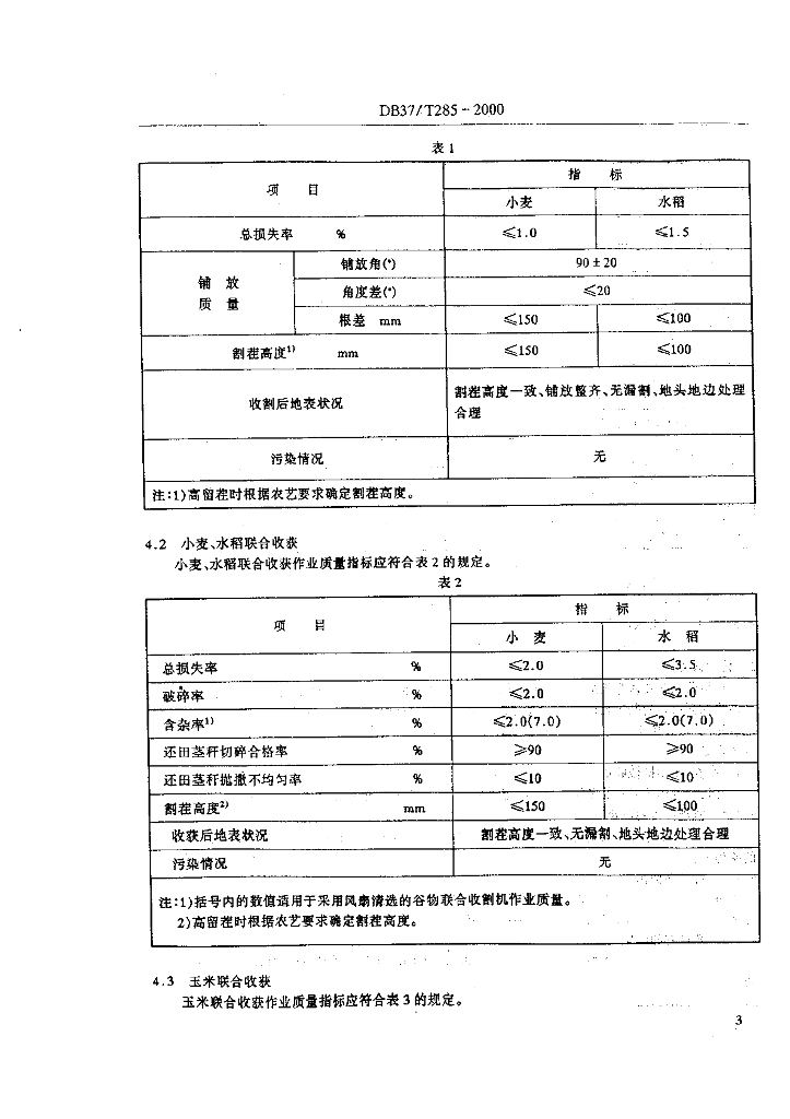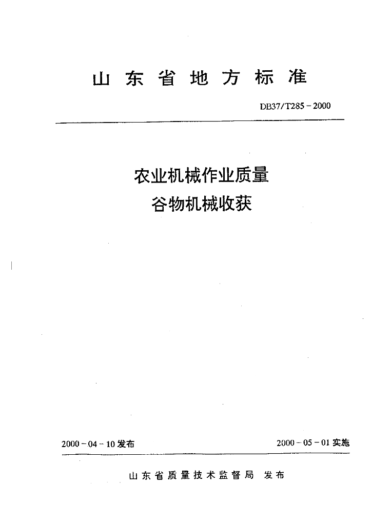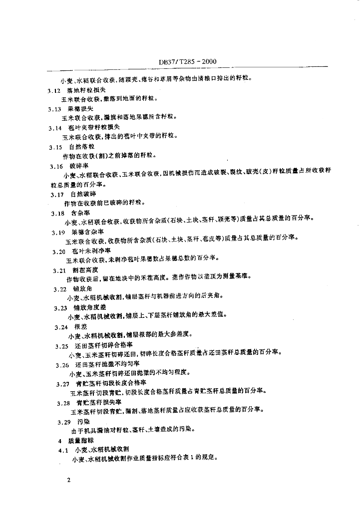 DB37/T 285-2000 农业机械作业质量 谷物机械收获