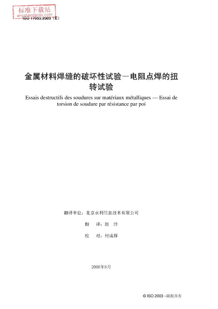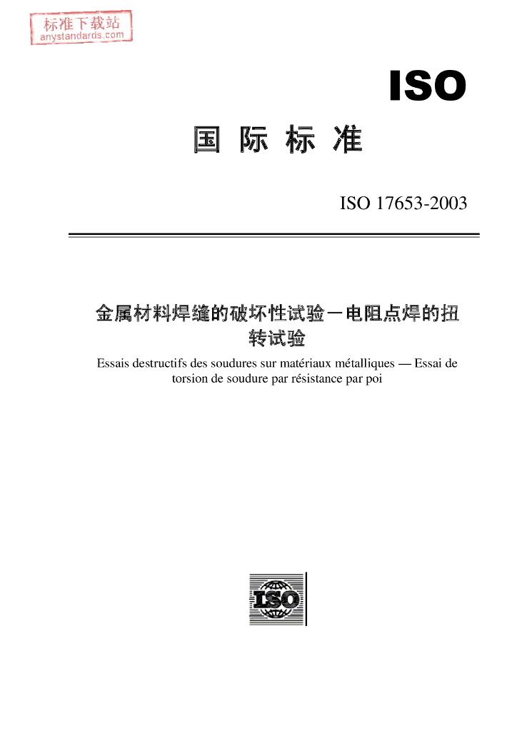 ISO 17653-2003 金属材料接头的破坏检验.电阻点焊的扭转试验 中文版