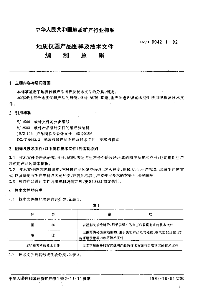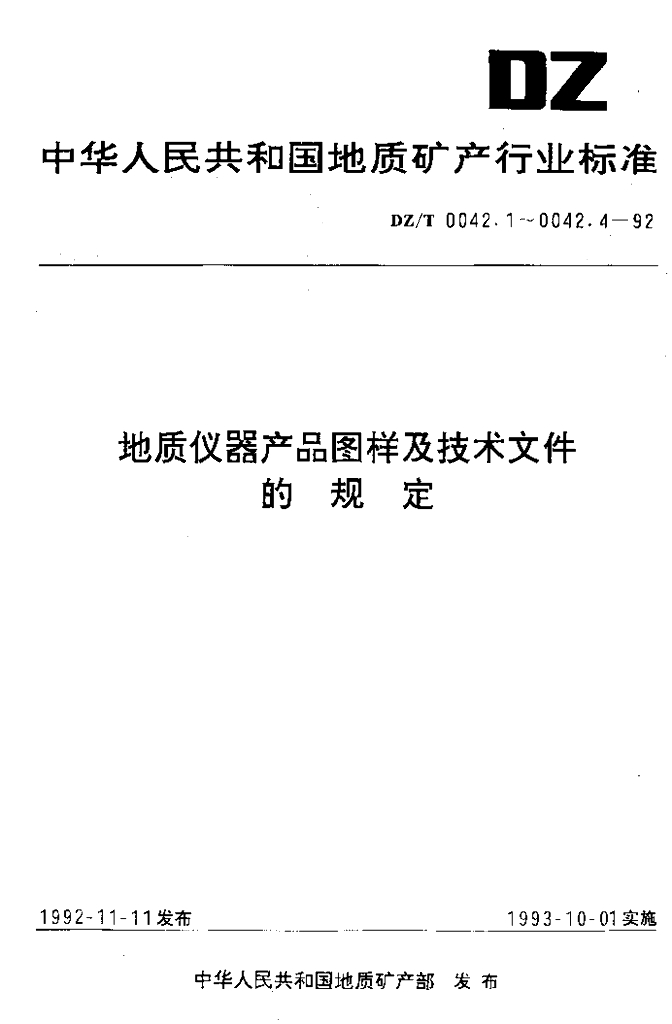 DZ/T 0042.1-1992 地质仪器产品图样及技术文件编制总则