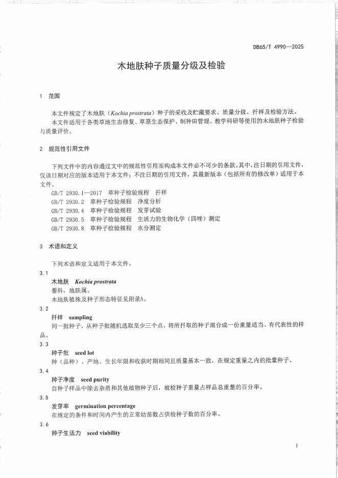 DB65/T 4990-2025 木地肤种子质量分级及检验
