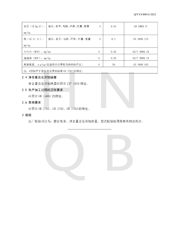 Q/YYS 0001S-2022 速冻果蔬