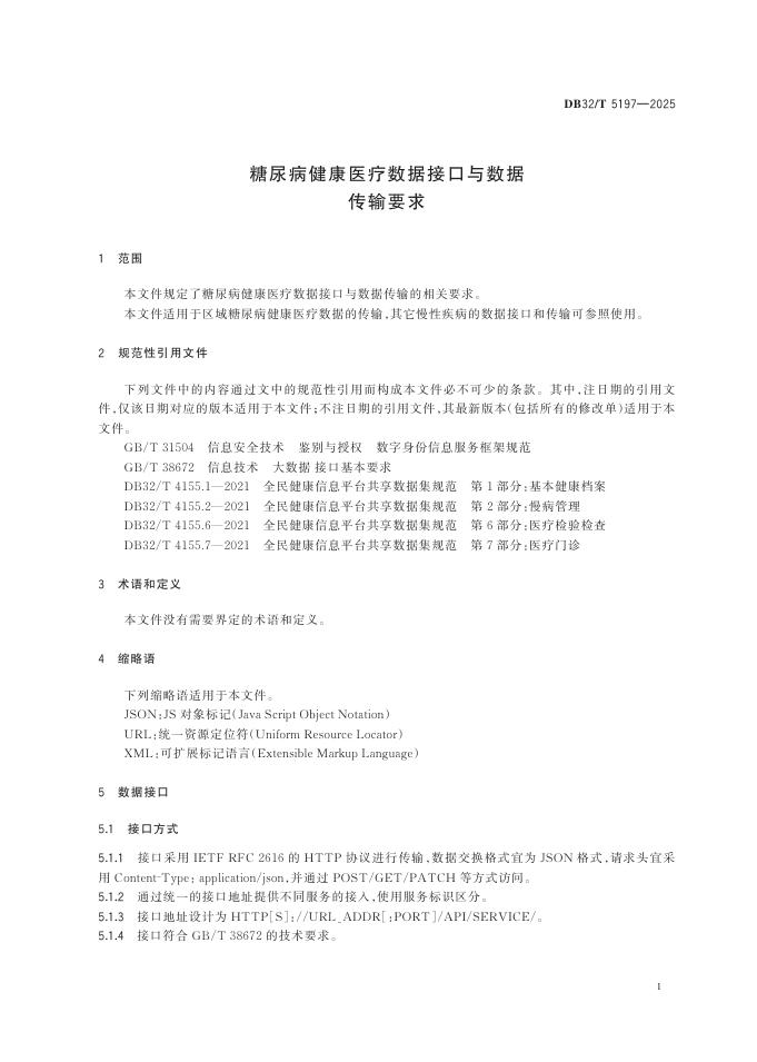 DB32/T 5197-2025 糖尿病健康医疗数据接口与数据传输要求