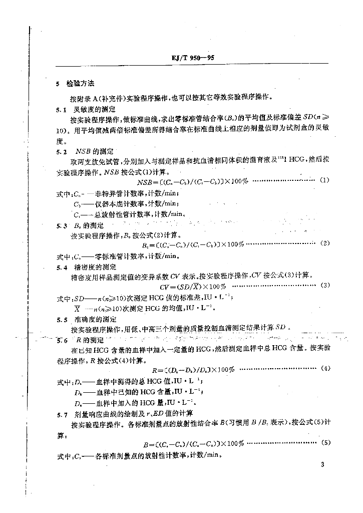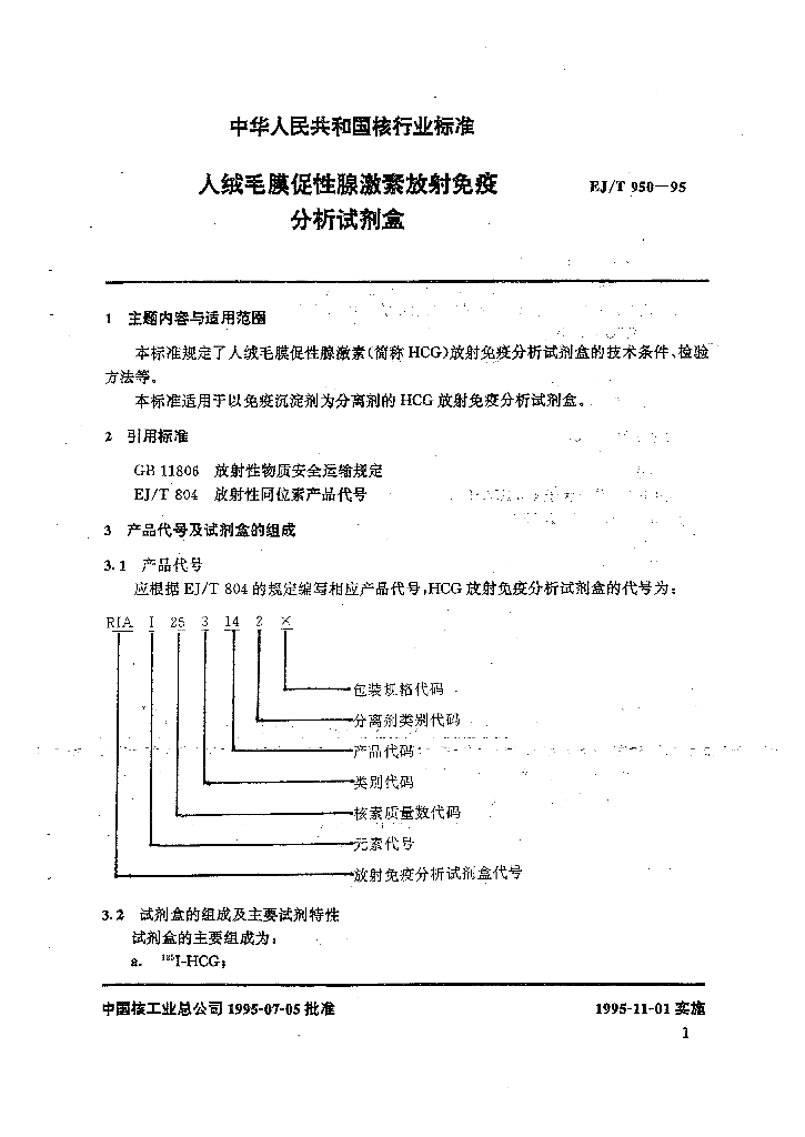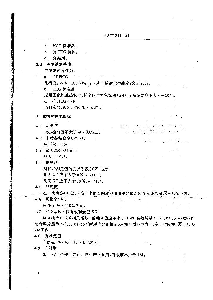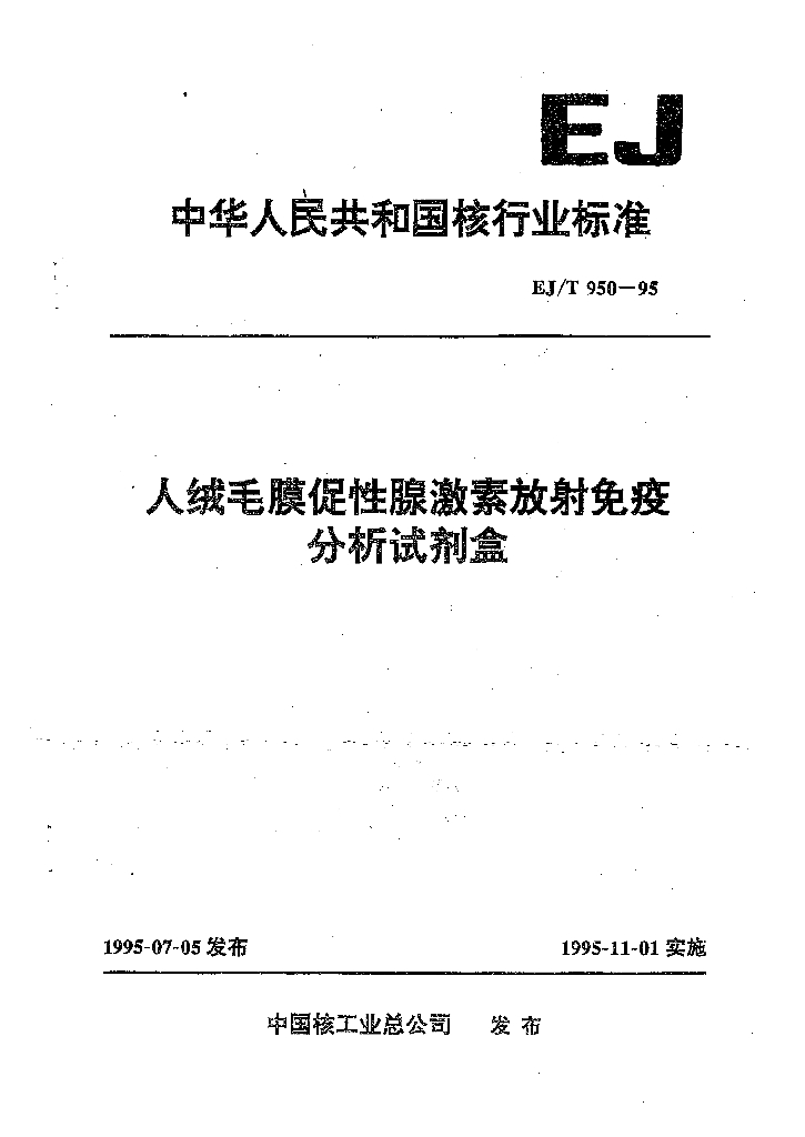 EJ/T 950-1995 人绒毛膜促性腺激素放射免疫分析试剂盒