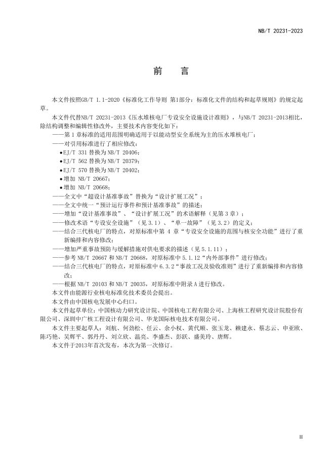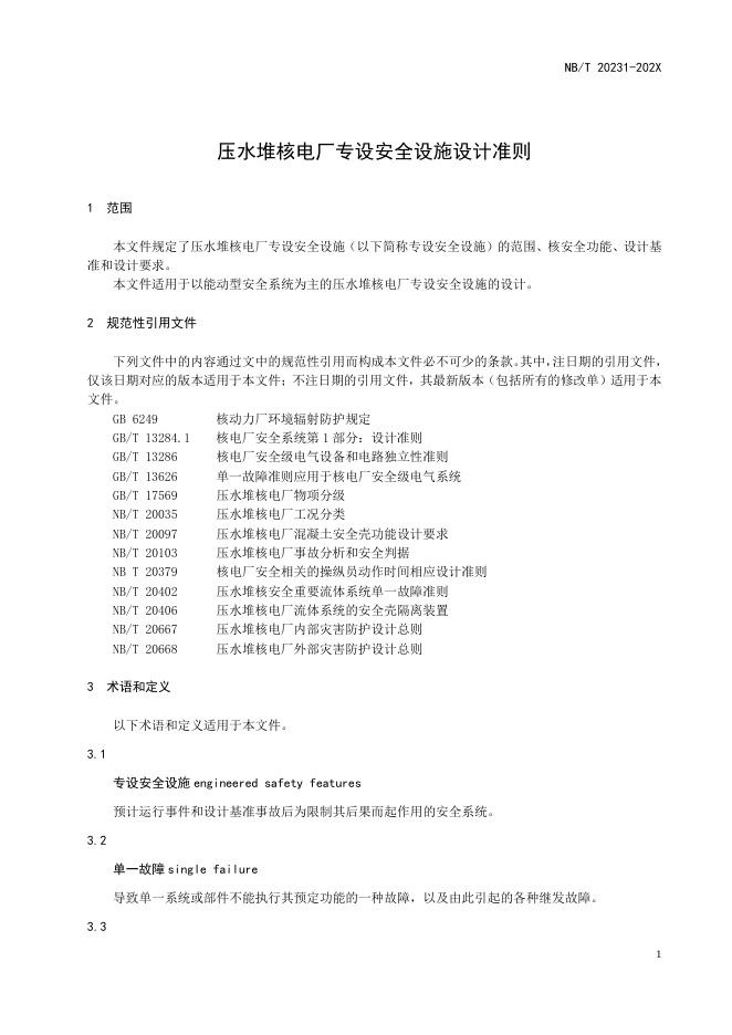 NB/T 20231-2023 压水堆核电厂专设安全设施设计准则