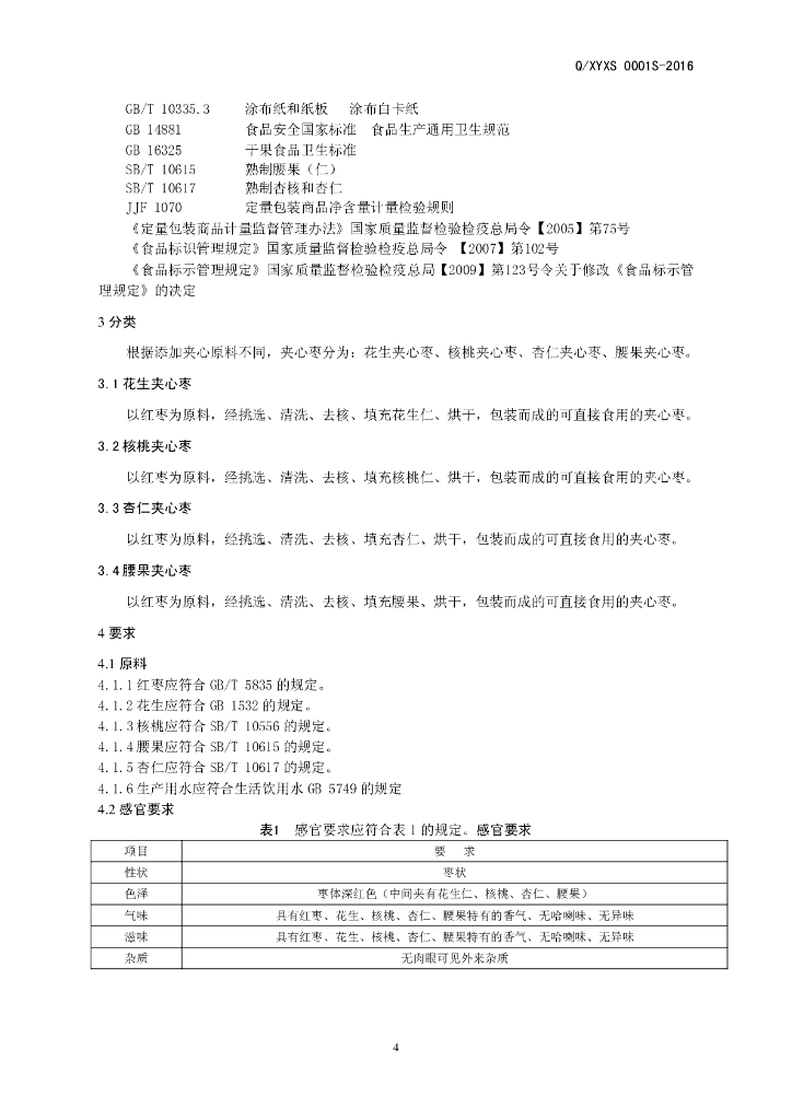Q/XYXS 0001S-2016 新郑市豫新食品有限公司 夹心枣