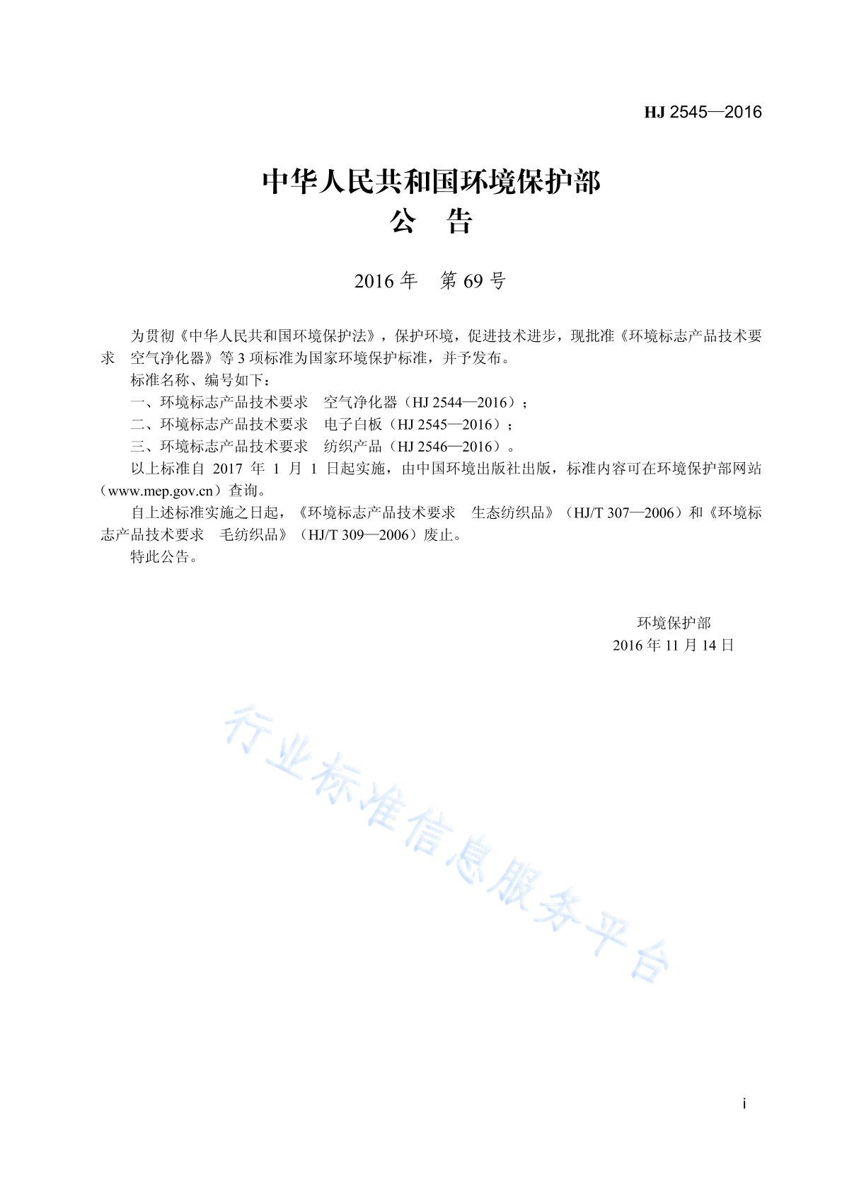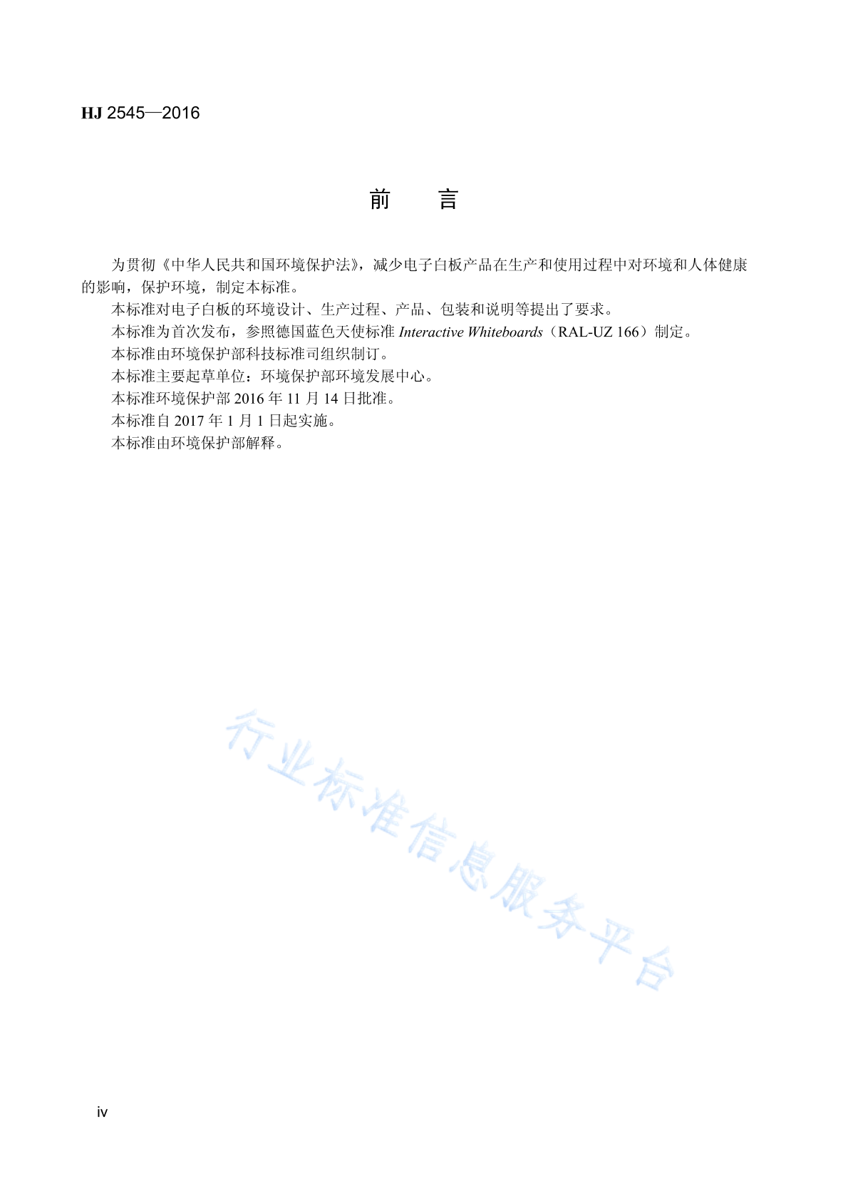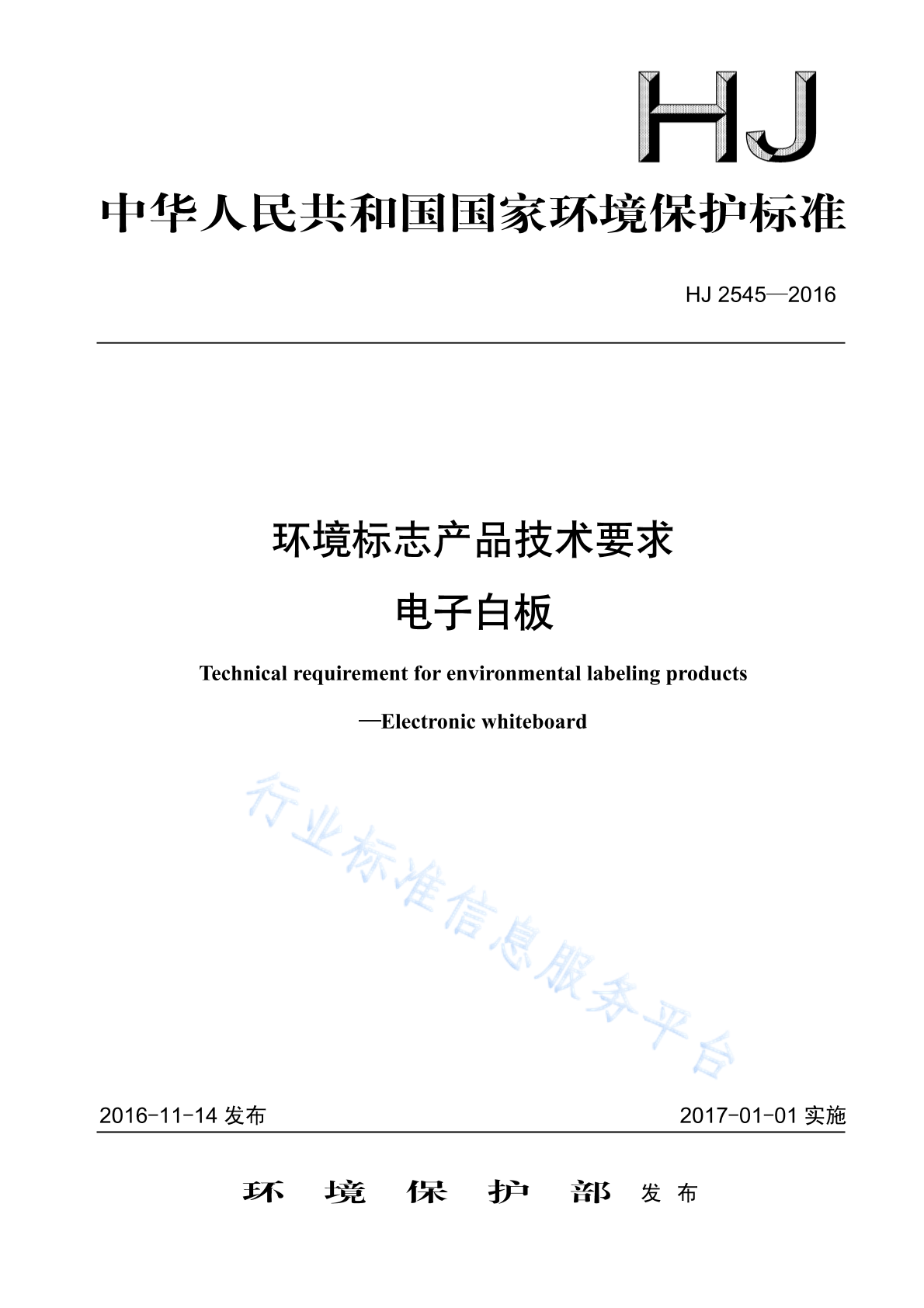 HJ 2545-2016 环境标志产品技术要求 电子白板