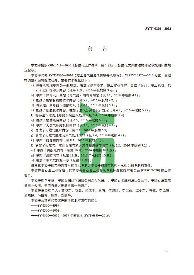 - 代替标准:SY/T 6320-2016 部分代替:SY/T 6320-2016