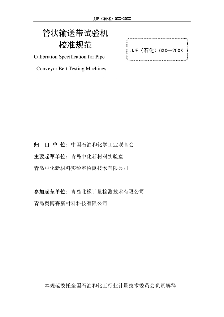 JJF(石化)091-2023 管状输送带试验机校准规范(报批稿)