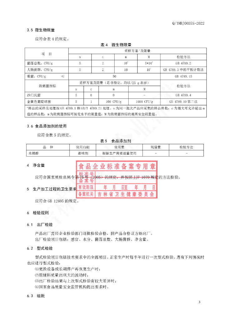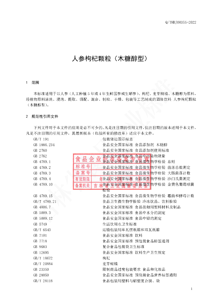 Q/THBJ 0035S-2022 人参枸杞颗粒(木糖醇型)