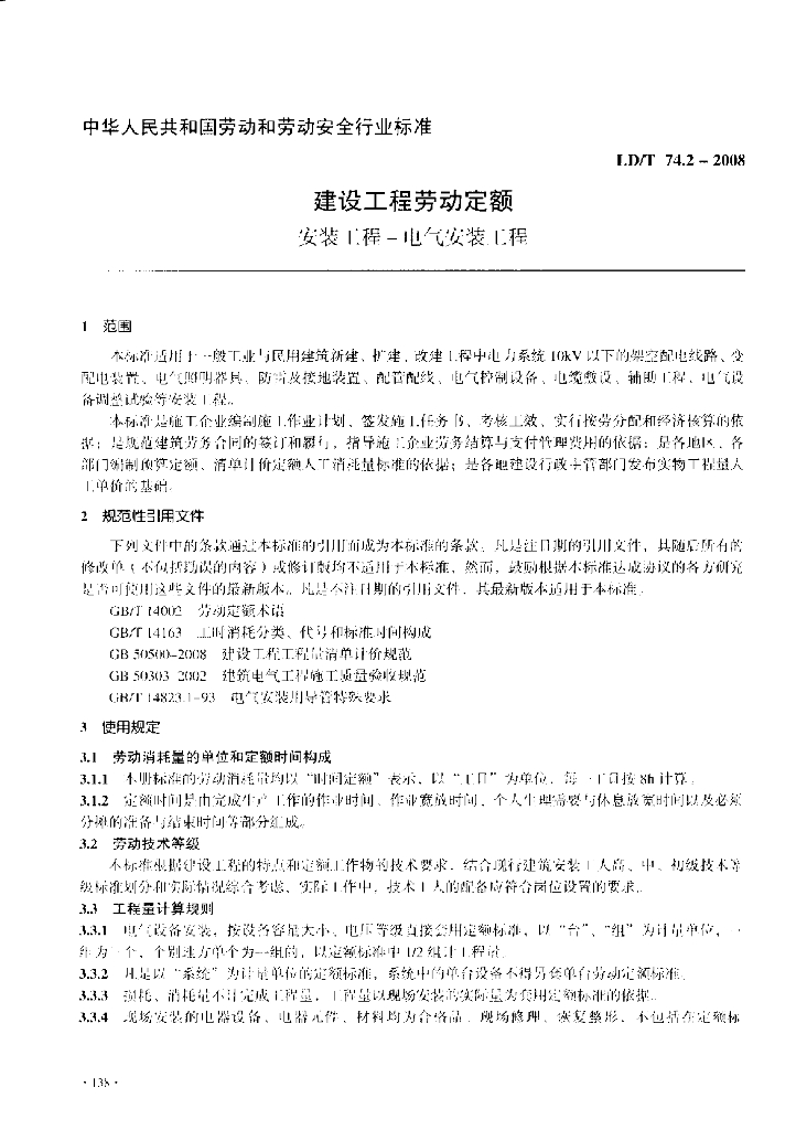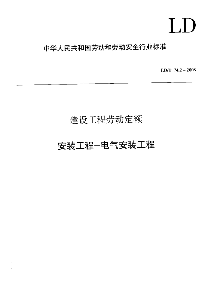 LD/T 74.2-2008 建设工程劳动定额 安装工程 电气安装工程