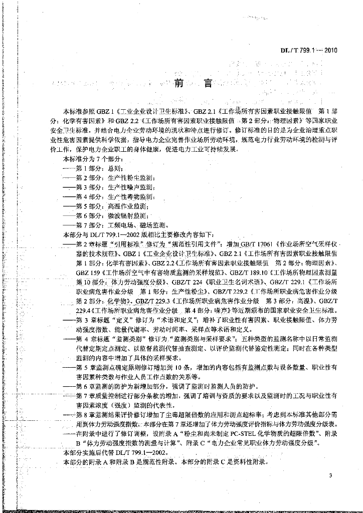 DL/T 799.1-2010 电力行业劳动环境监测技术规范 第1部分:总则