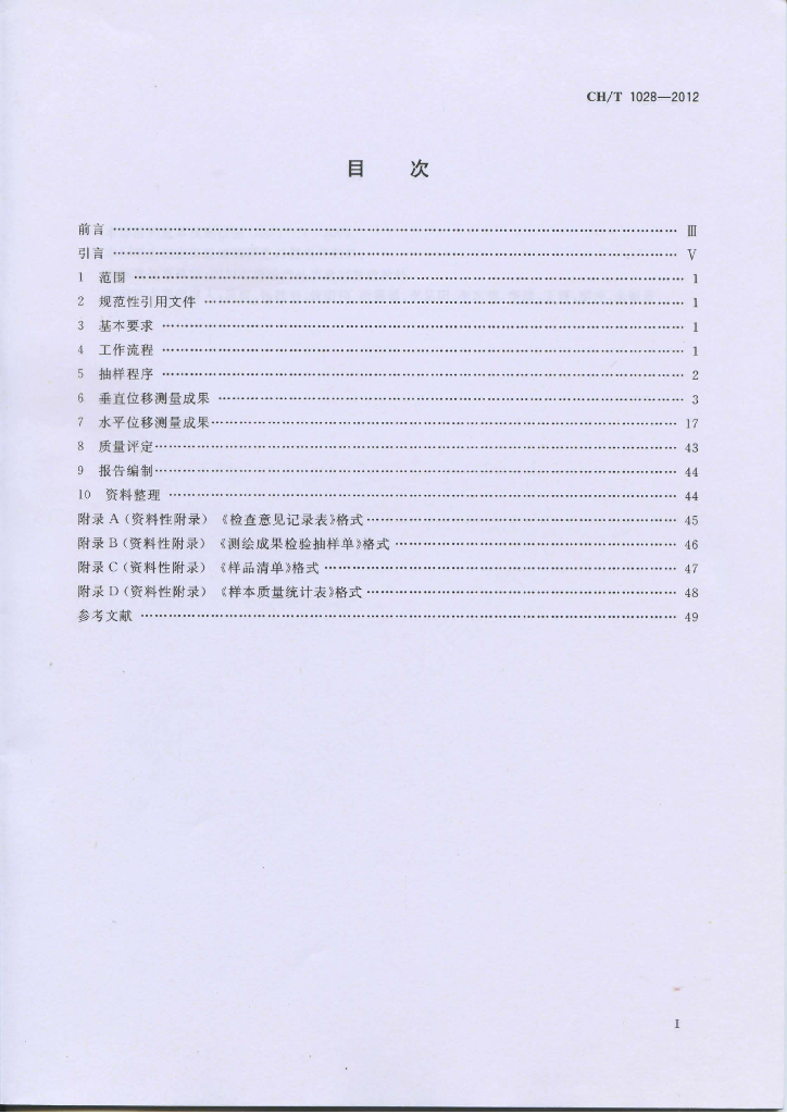 CH/T 1028-2012 变形测量成果质量检验技术规程
