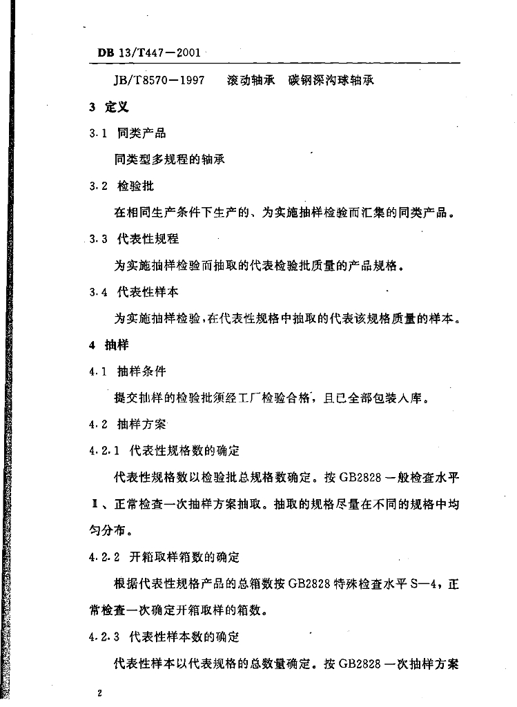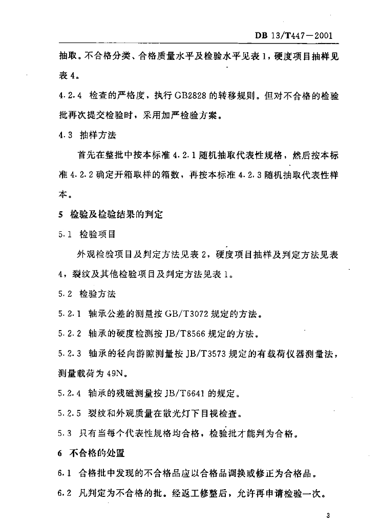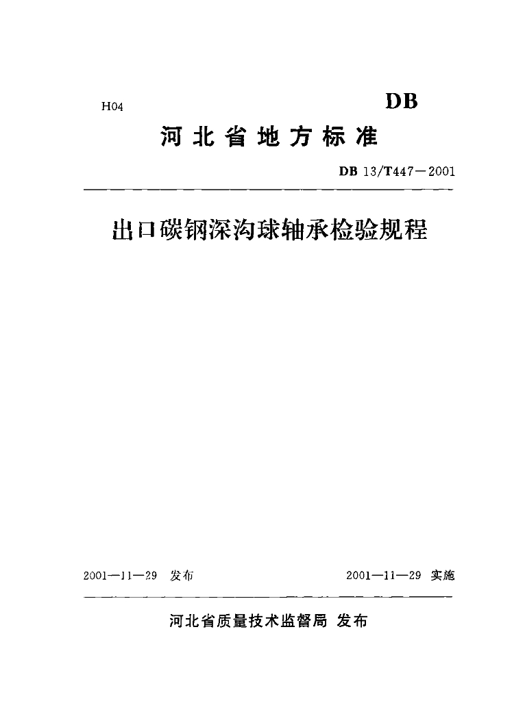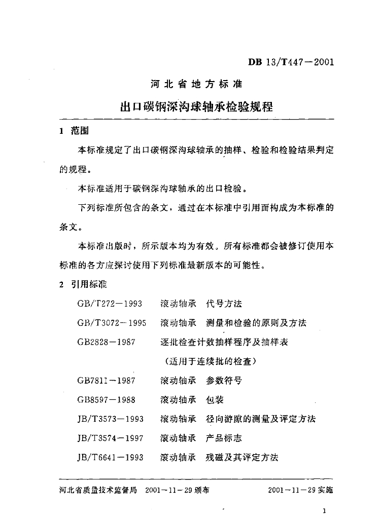 DB13/T 447-2001 出口碳钢深沟球轴承检验规程