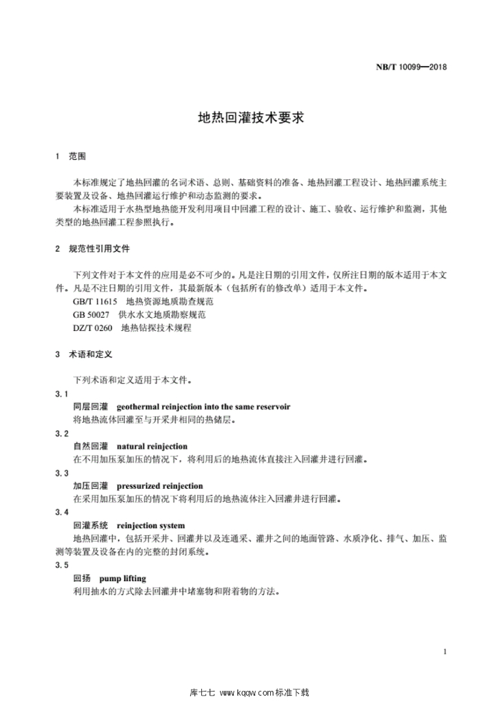 NB/T 10099-2018 地热回灌技术要求