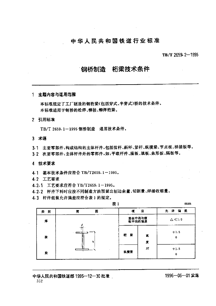 TB/T 2659.2-1995 钢桥制造桁梁技术条件