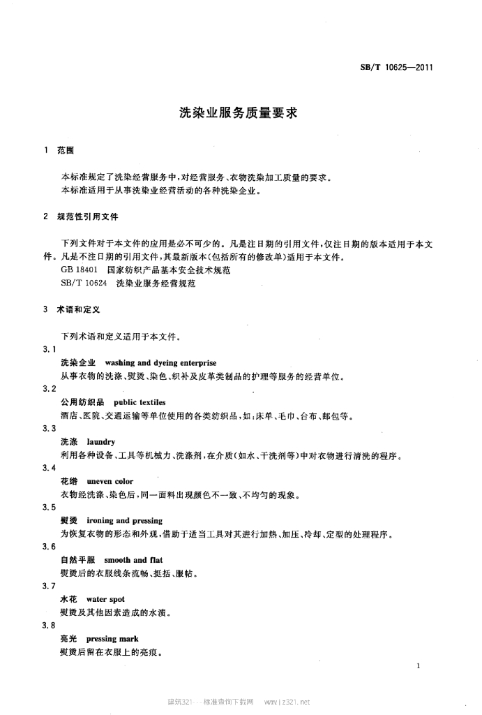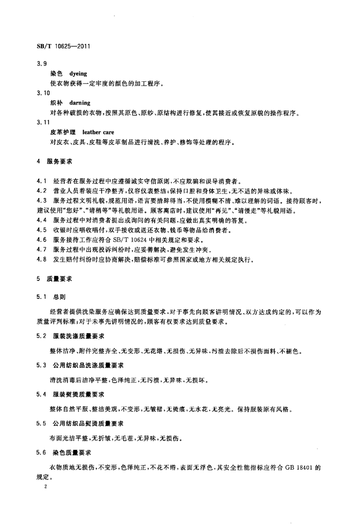 SB/T 10625-2011 洗染业服务质量要求