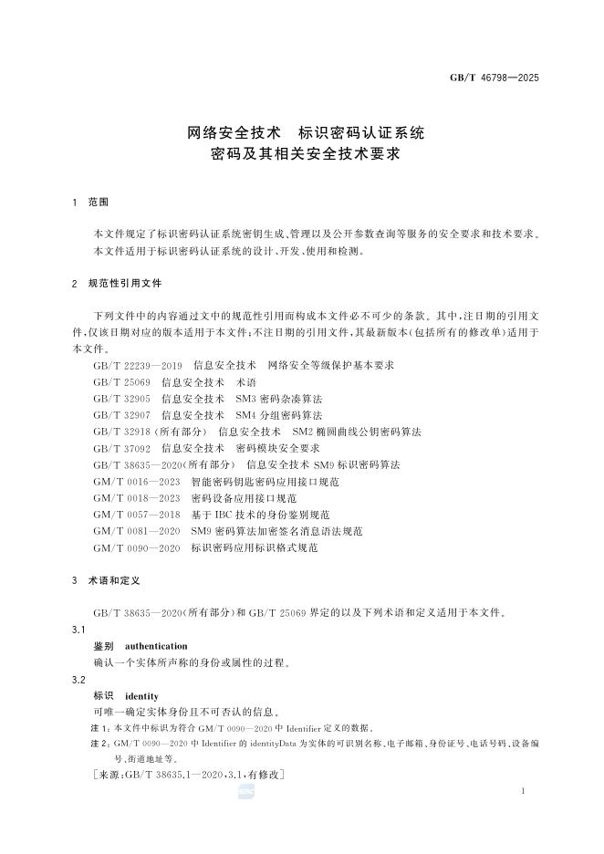 GB/T 46798-2025 网络安全技术 标识密码认证系统密码及其相关安全技术要求