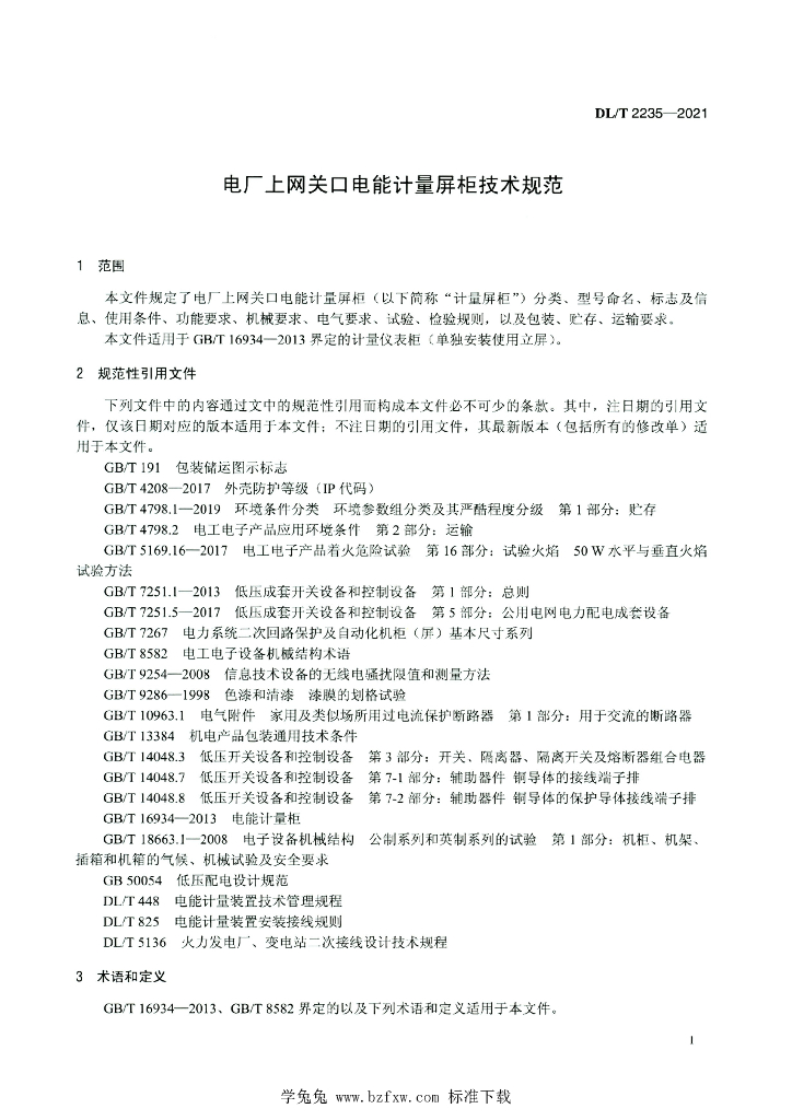 DL/T 2235-2021 电厂上网关口电能计量屏柜技术规范