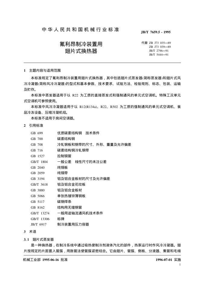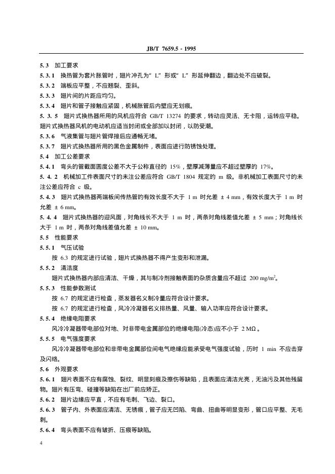 JB/T 5444-1991 单元式空气调节机组用冷凝器 型式与基本参数