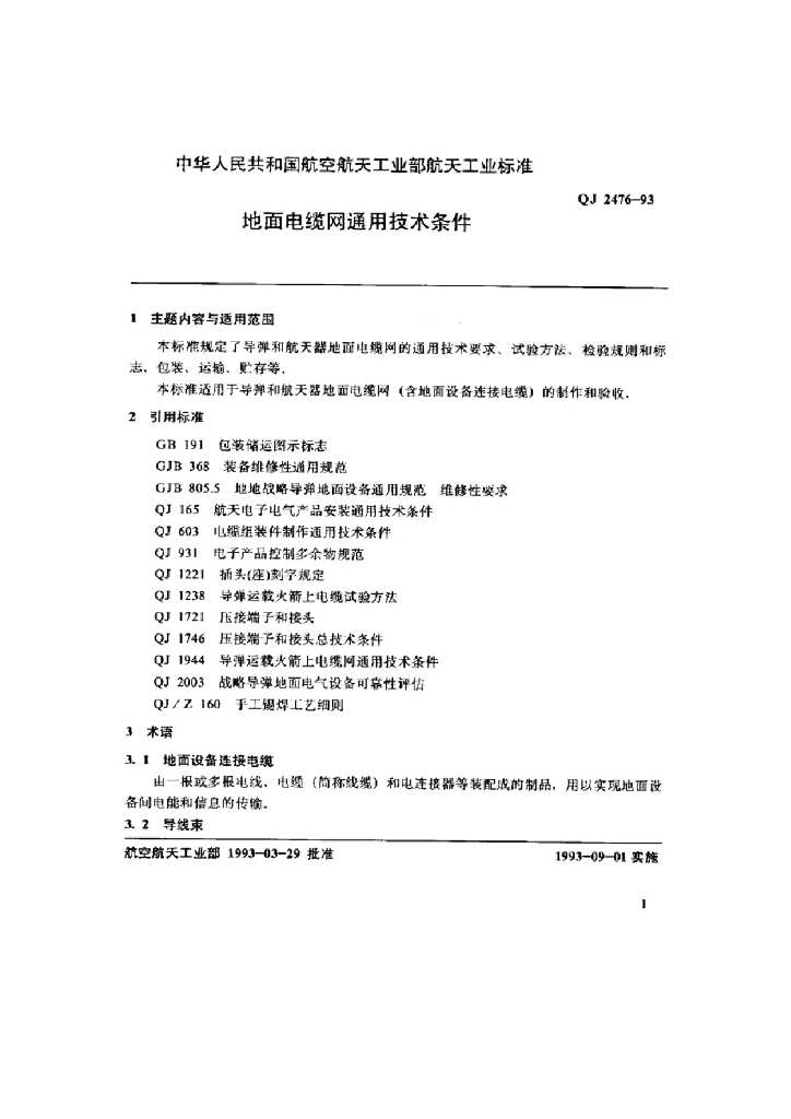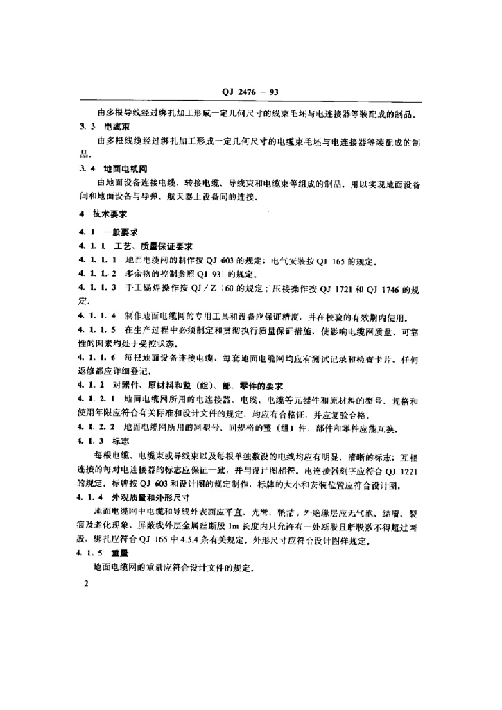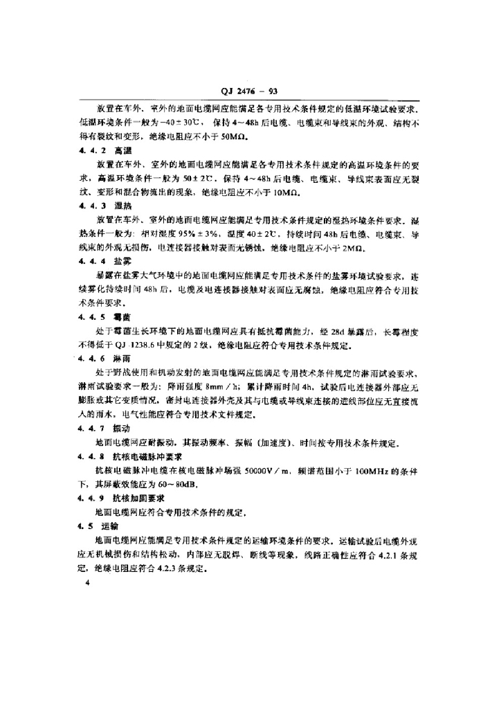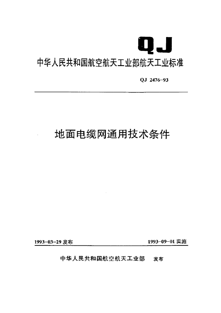 QJ 2476-1993 地面电缆网通用技术条件
