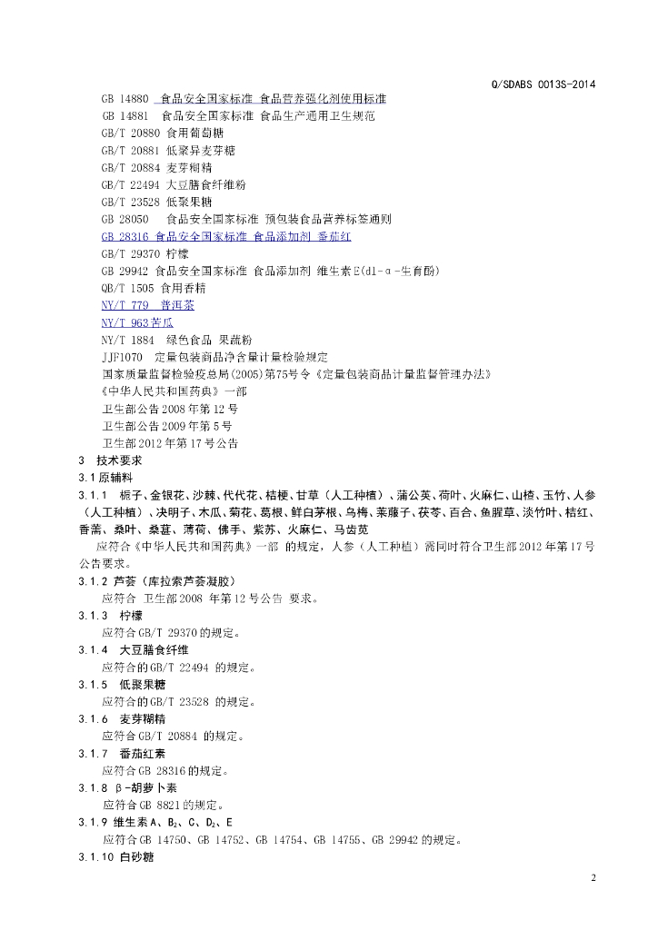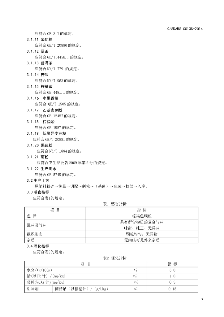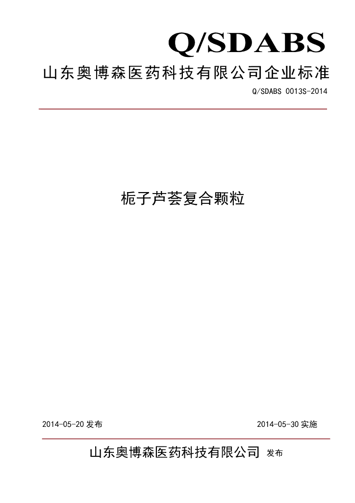 Q/SDABS 0013S-2014 山东奥博森医药科技有限公司 栀子芦荟复合颗粒