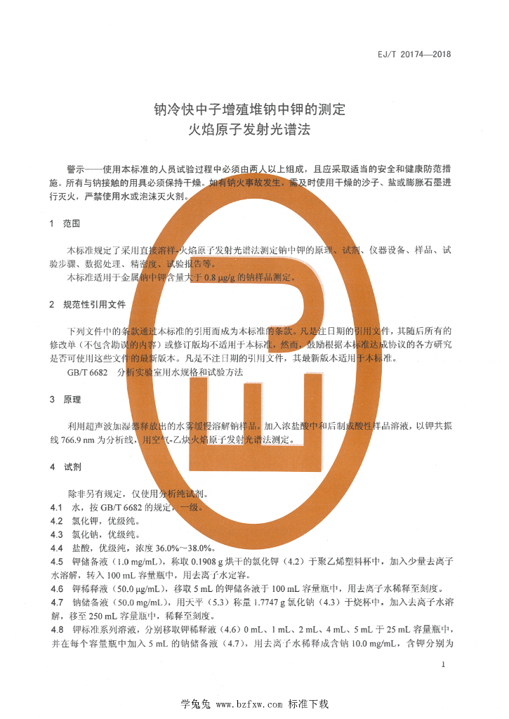 EJ/T 20174-2018 全 钠冷快中子增殖堆钠中钾的测定 火焰原子发射光谱法