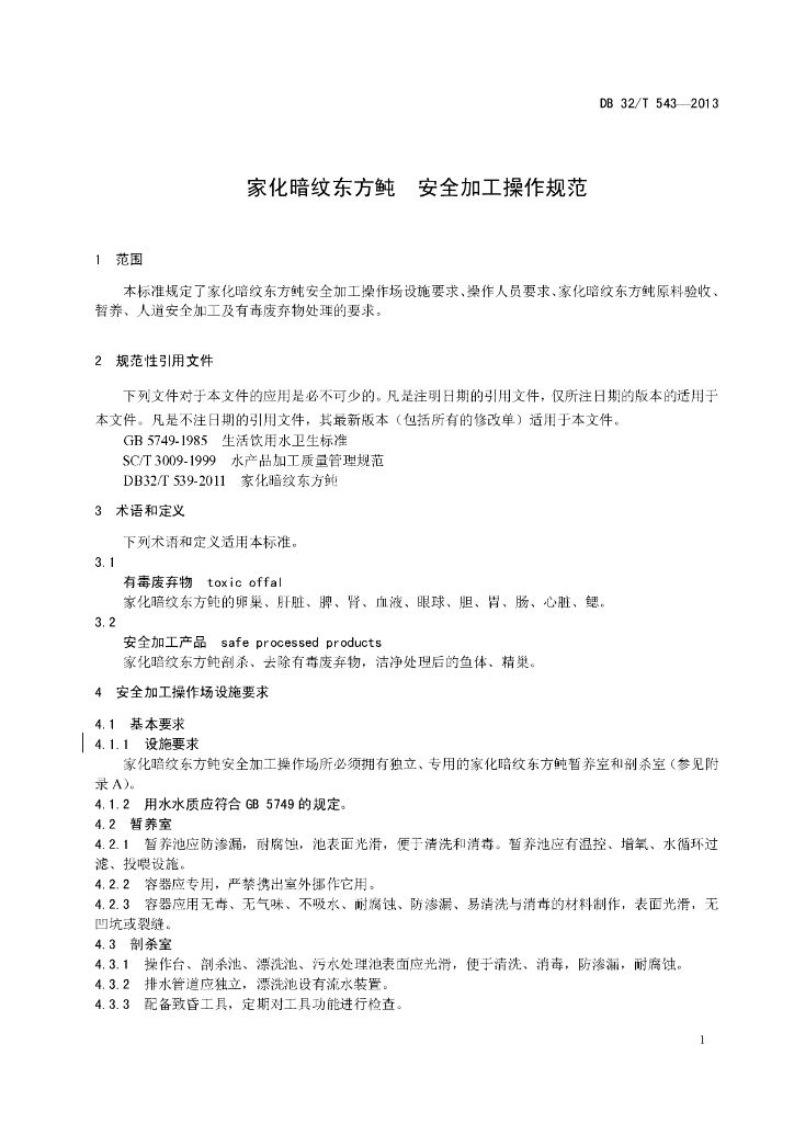 DB32/T 543-2013 家化暗纹东方鲀 安全加工操作规范