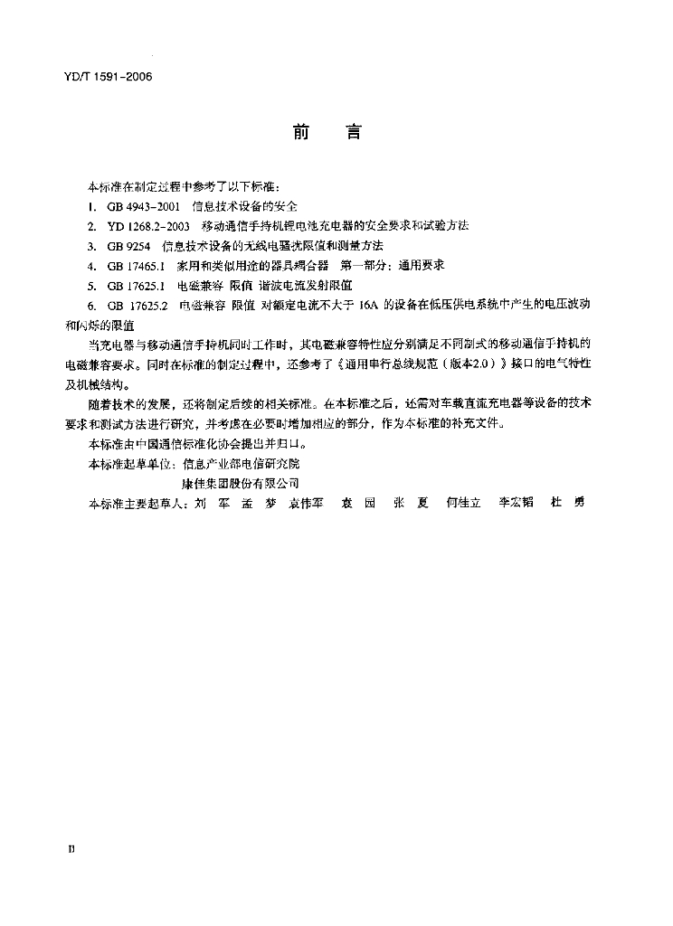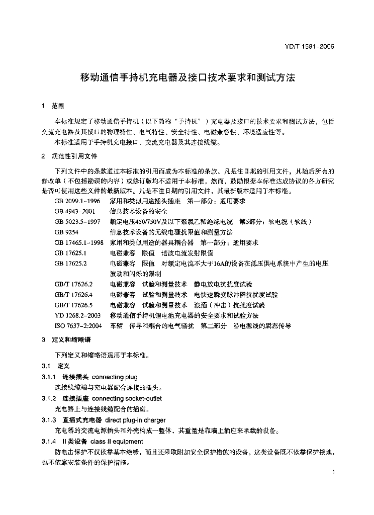 YD/T 1591-2006 移动通信手持机充电器及接口技术要求和测试方法