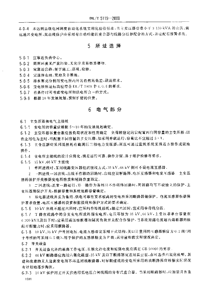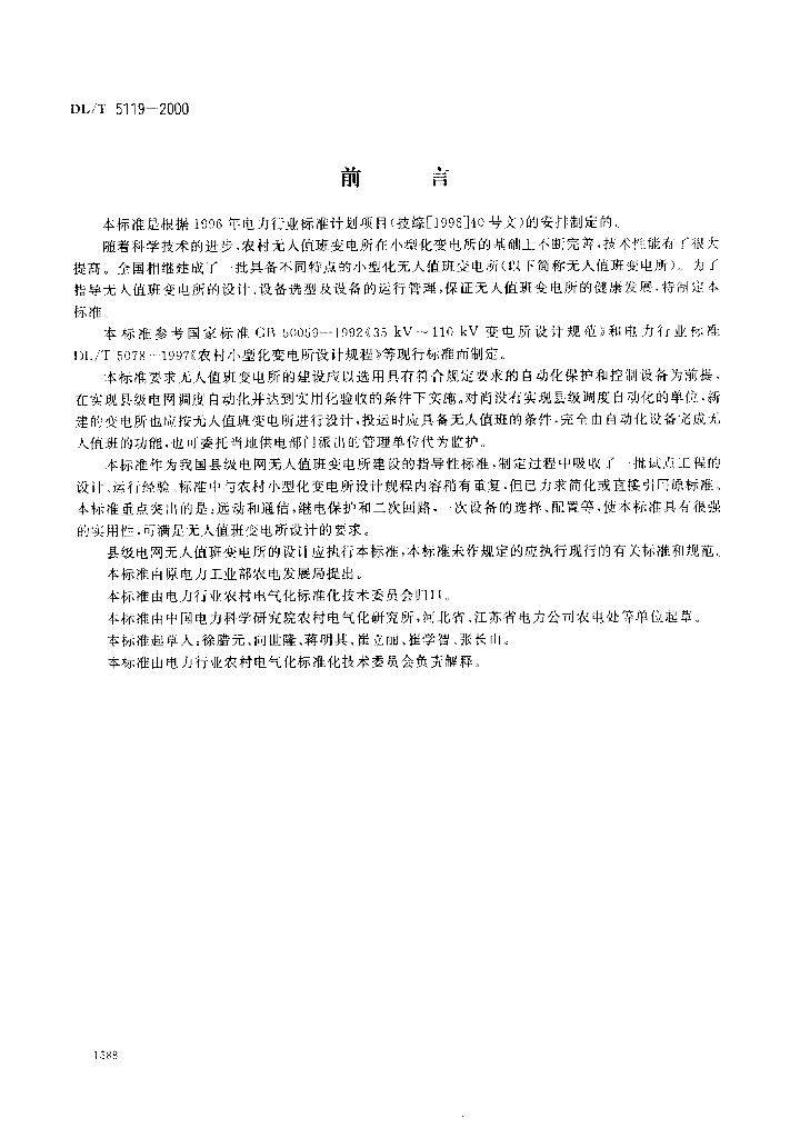 DL 5119-2000 农村小型化无人值班变电所 设计规程